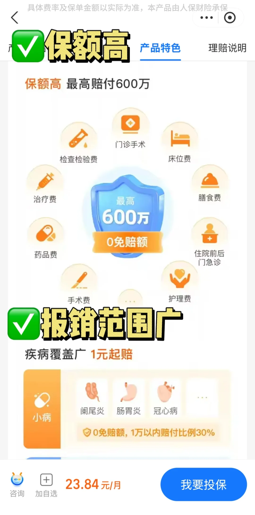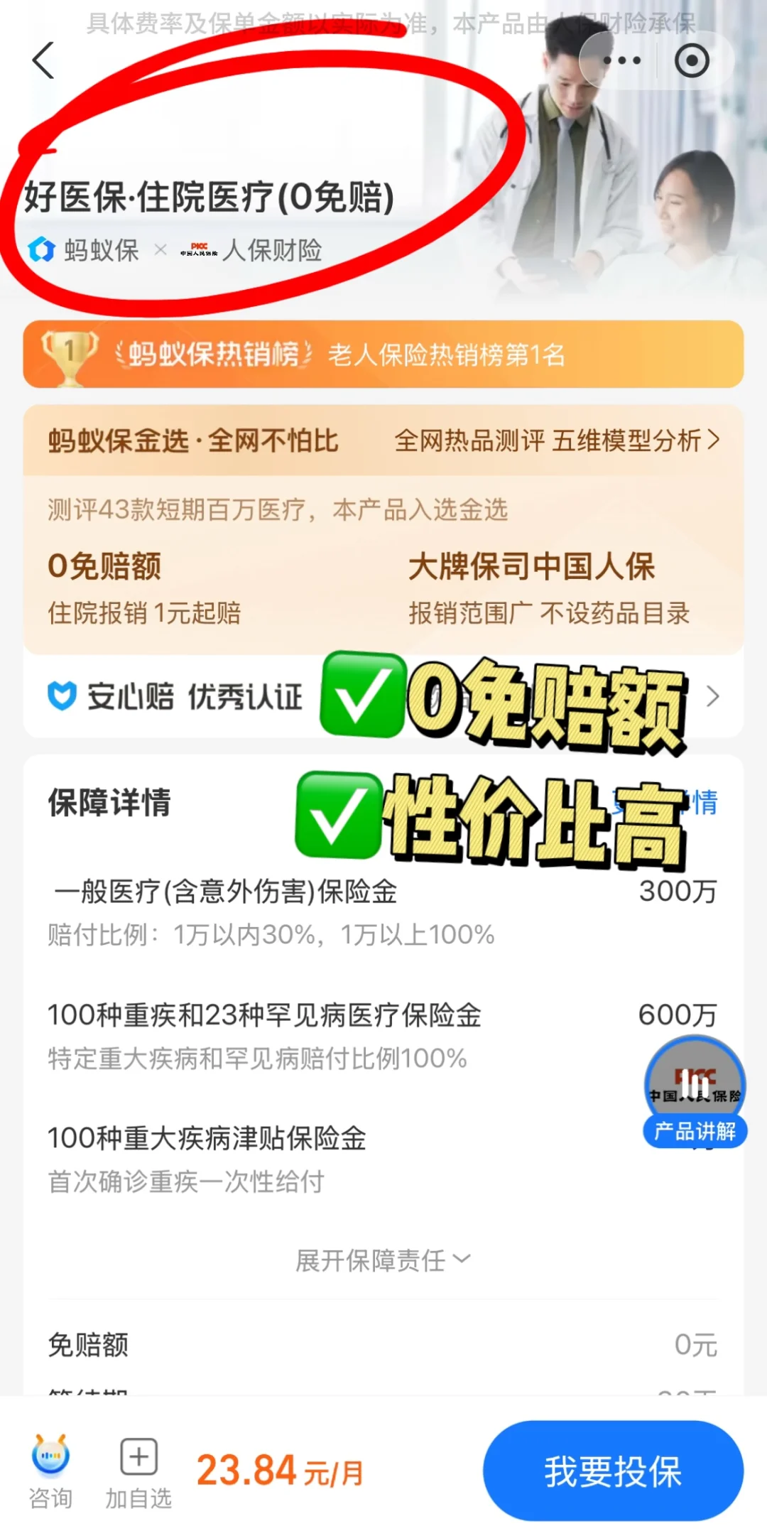 👉大家可以看看支付宝上人保财险承保的【好医保·住院医疗(0免赔)】,不设置免赔门槛,做到责任内住院1元起赔,真的非常满足打工人省钱的需求了✅
