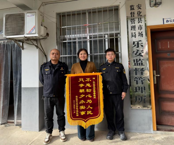 “只争朝夕办实事,不忘初心为人民!”近日,安化县乐安镇文石村村民代表将一面鲜红的锦旗送到安化县市场监督管理局乐安市场监督管理所,感谢执法人员迅速行动,成功调解一起涉及老年消费者的群体性消费投诉,挽回经济损失一万余元。