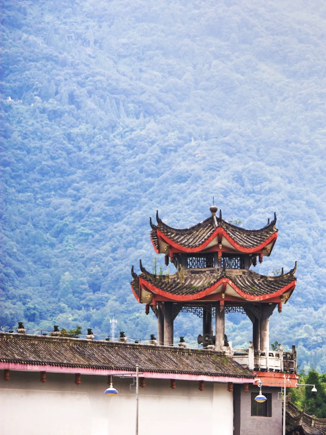 6⃣️离都江堰不远的南桥也很壮观,背靠青山⛰️往里走两步就到了“灌县古城”,随便找一家人多的川菜馆坐下都不会错的[色色R]