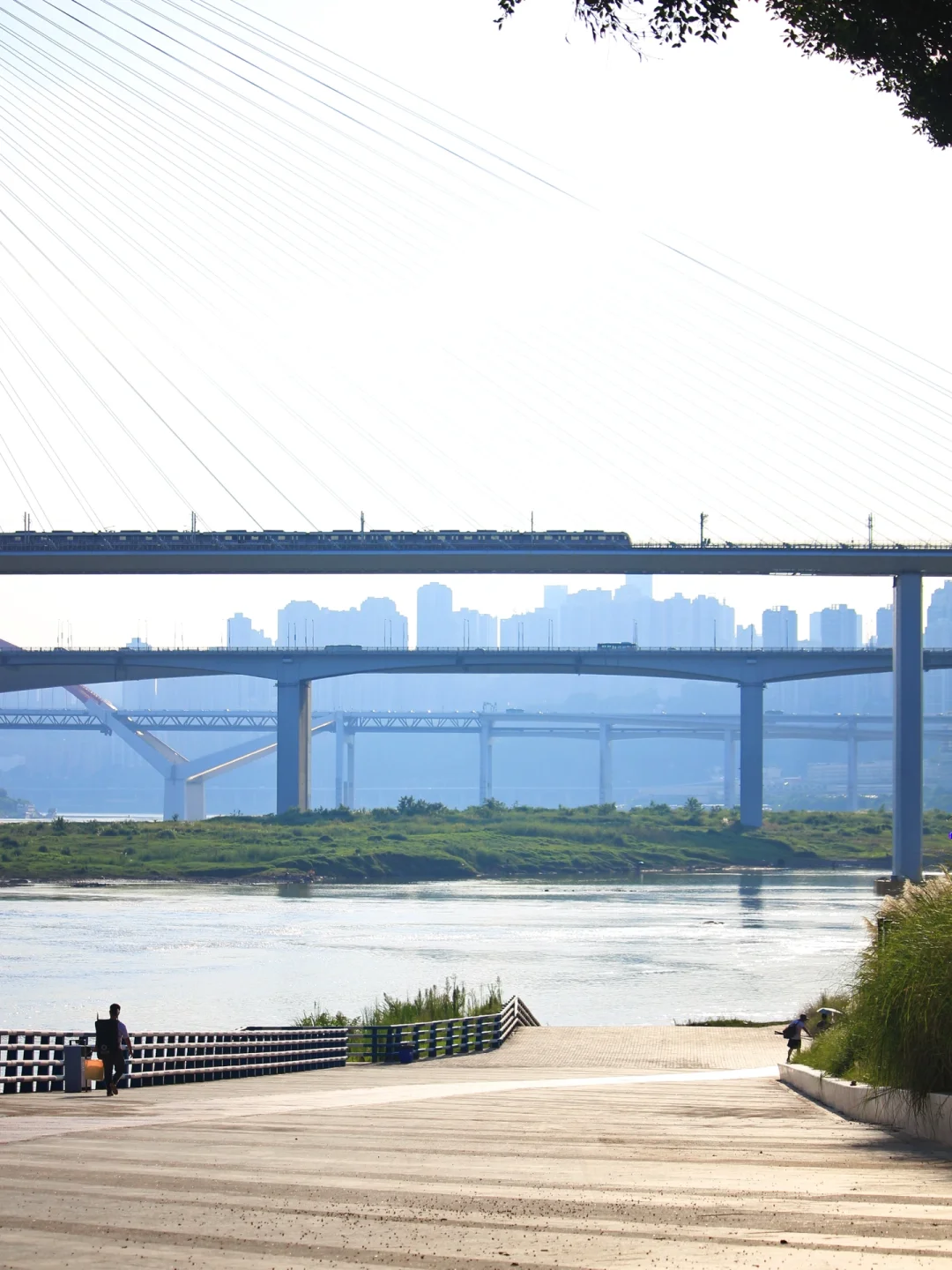 夜晚江两边的霓虹灯光倒映在江中,少许微风,十分惬意[喝奶茶R]往弹子石老街方向走,沿途全是精华打卡点,交通也方便,不想走了随时可以打车