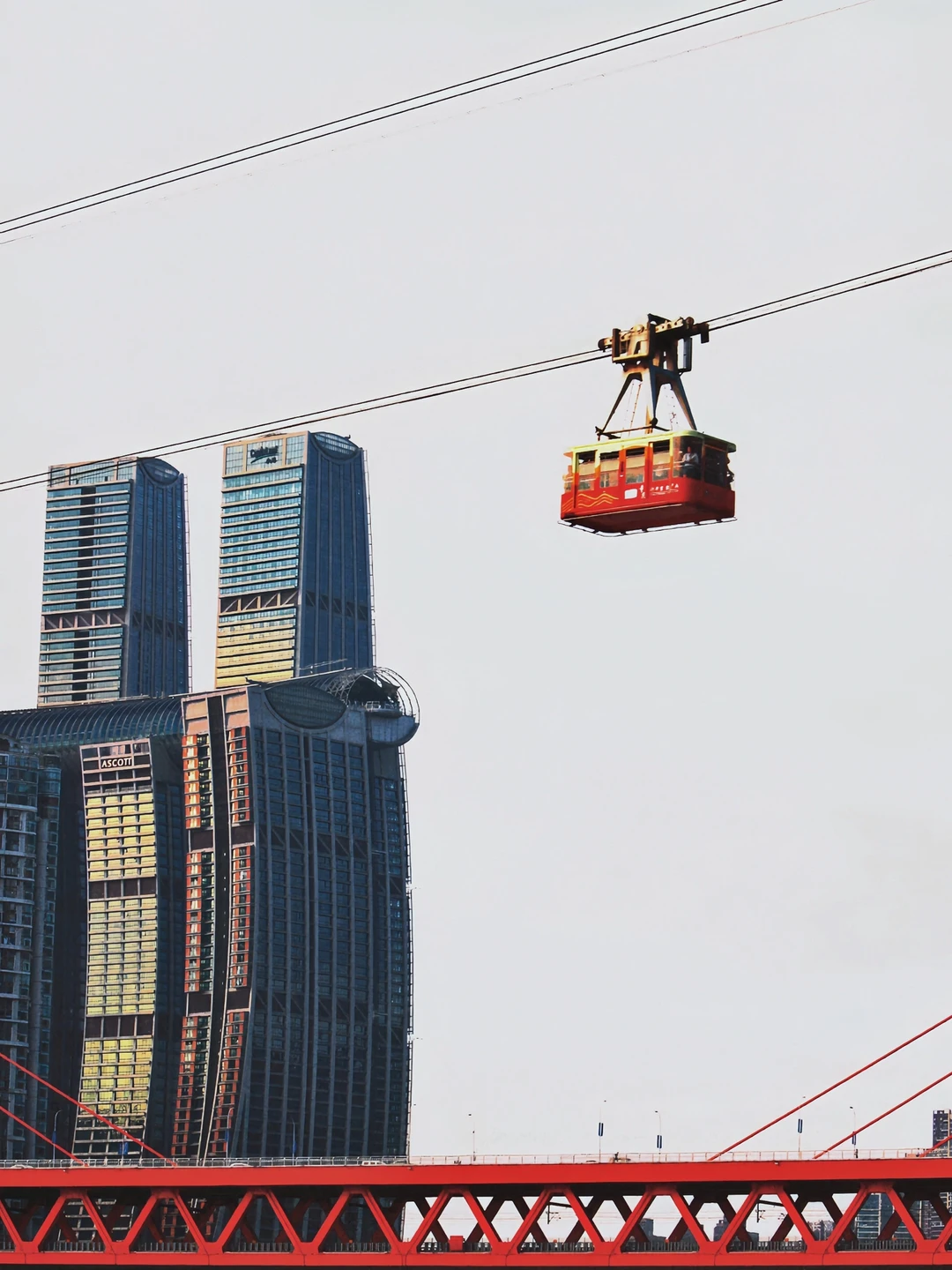是的没看错,从桥上走,能俯瞰黄墙黑顶的湖广会馆,能远眺耸立的来福士,也能看长江索道缓缓划过,视野极佳[色色R]这一段本人超爱!!!