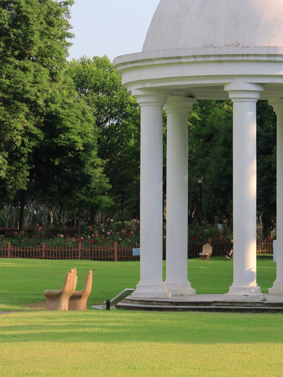 3⃣️如果天气较好,橘子洲的最佳游玩方式还是慢慢步行🚶夏季沿途有大片的草坪,还能看到一些复古的建筑,小湖泊亭子桥梁很多(最近荷花开了),散步露营🏕️遛娃都没有任何问题,也超级出片!!!