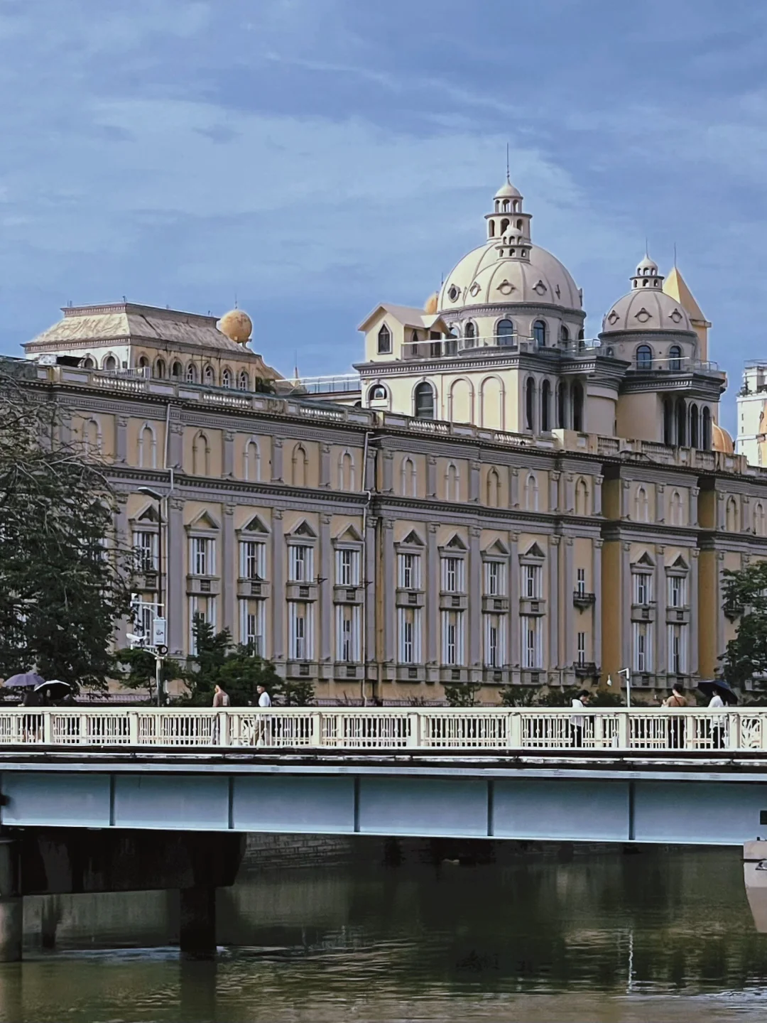 6⃣️中州岛远眺很有欧洲风情🏰它连接着解放大桥和烟台山商业街,很适合傍晚时分慢慢踱步🚶从解放大桥到烟台山商业街,看日头慢慢落下,再择一家餐厅欣赏窗外的夜景,非常惬意[色色R]