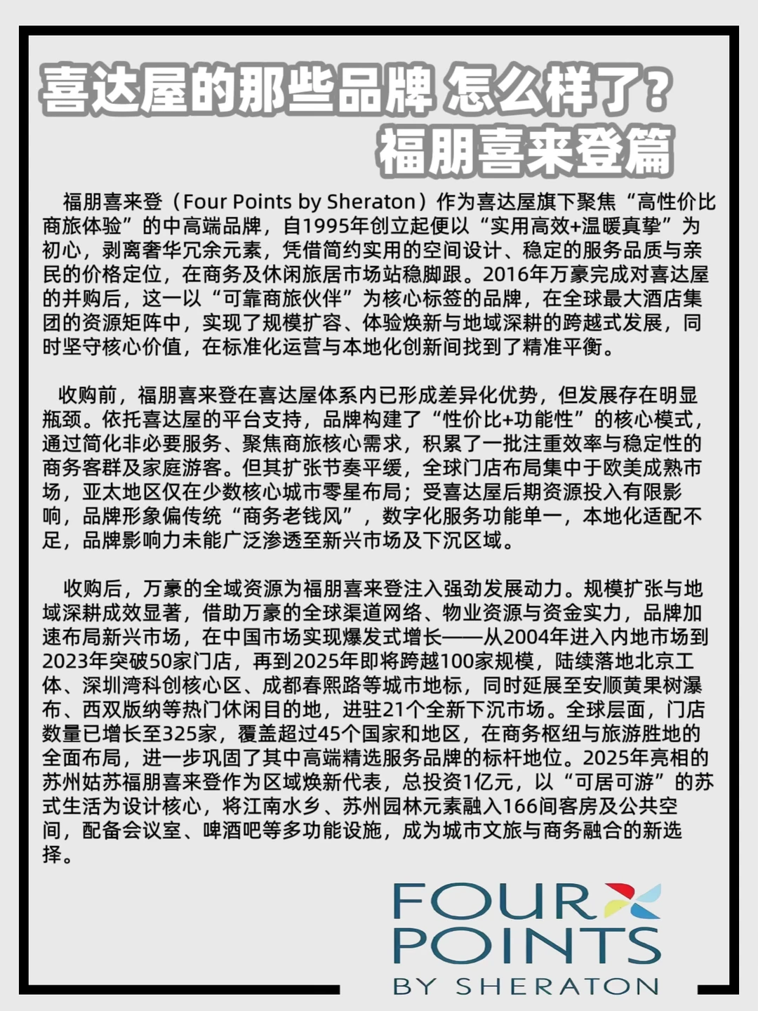 喜达屋旗下的11个品牌(瑞吉,W,豪华精选,臻品之选,威斯汀,艾美,喜来登,Design,福朋喜来登,雅乐轩,源宿)在十年前被万豪收购怎么样了呢?