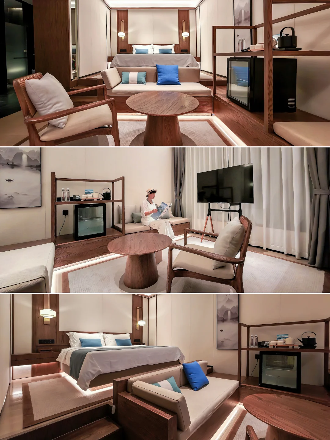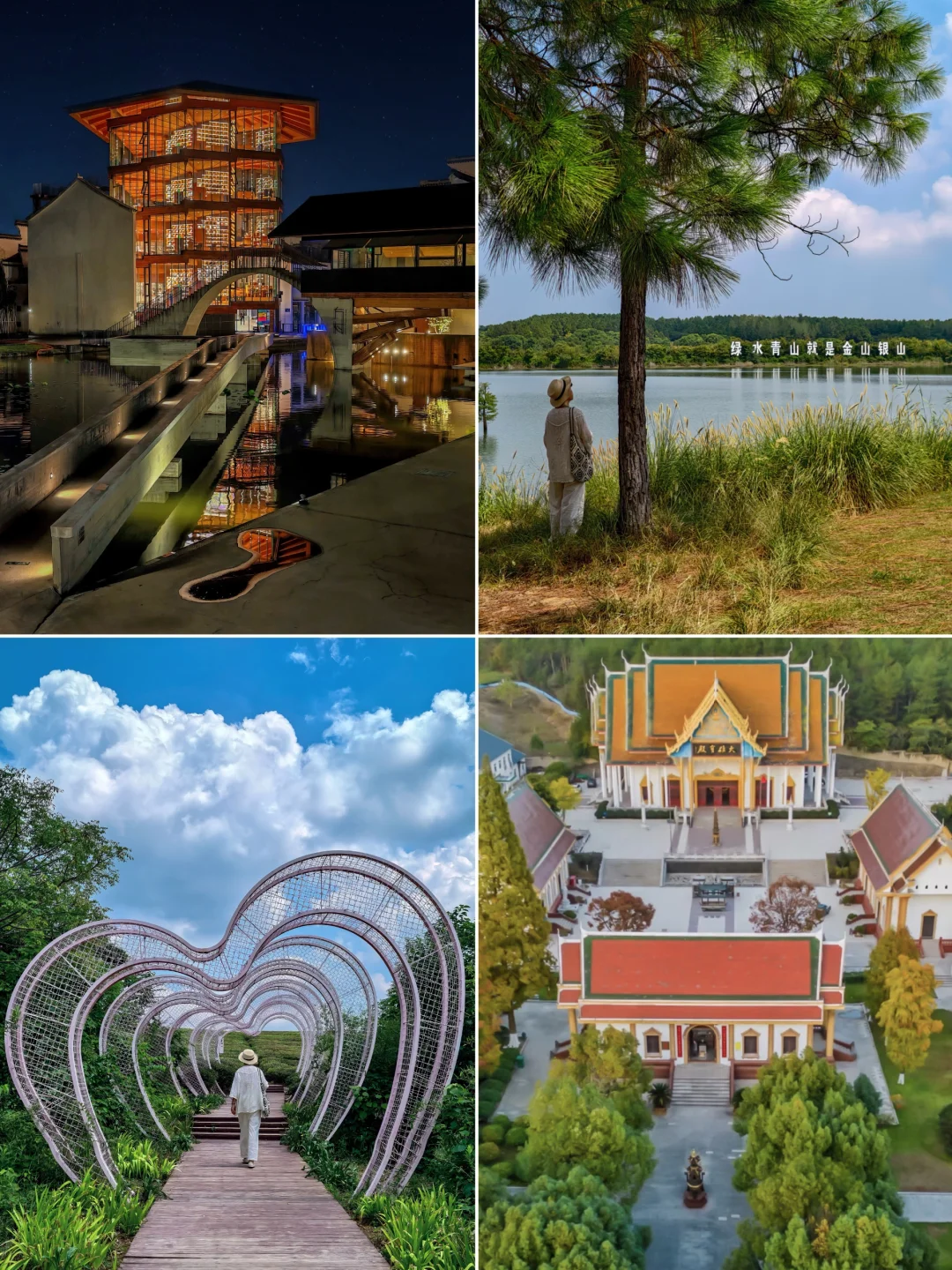 遇·碧波园:就在天目湖边!新中式仿古建筑风格,步行100米就是山水园。推窗即湖景的感觉,家人们谁懂啊!房间简约大气,落地浴缸🛁惊艳,边泡澡边看湖景星星,仪式感拉满! 拍照点位:湖边栈道、露台、早餐、大厅、茶座…九宫格发不完