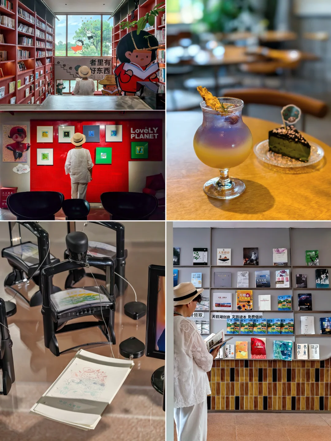 📍梦界方村:逛累了来喝杯咖啡☕看看书,夜幕下的天目书塔很震撼