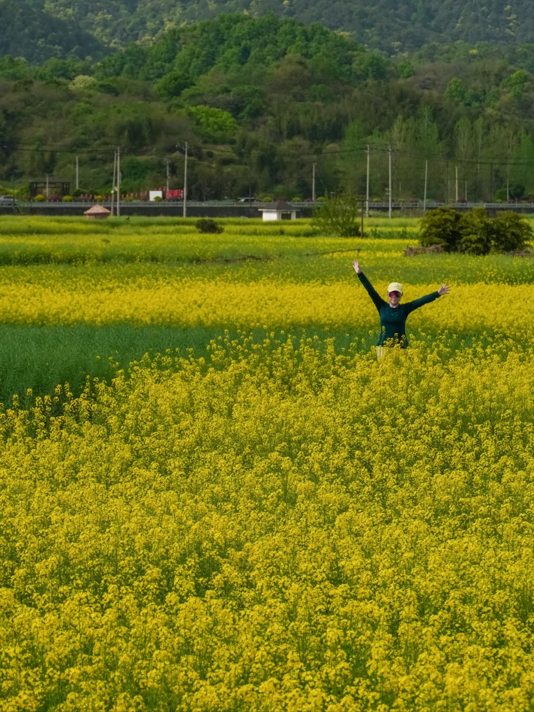 “十里桐洲九里花”名不虚传!金黄花海与碧水青山相映,随手一拍就是大片。