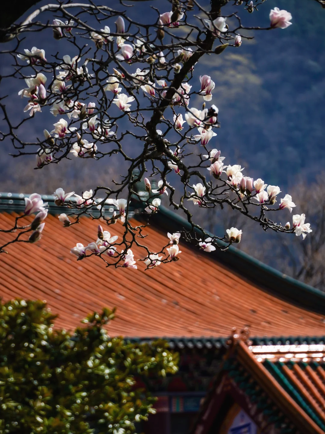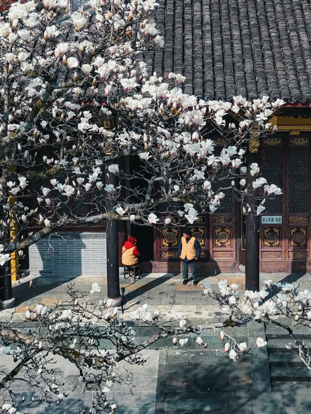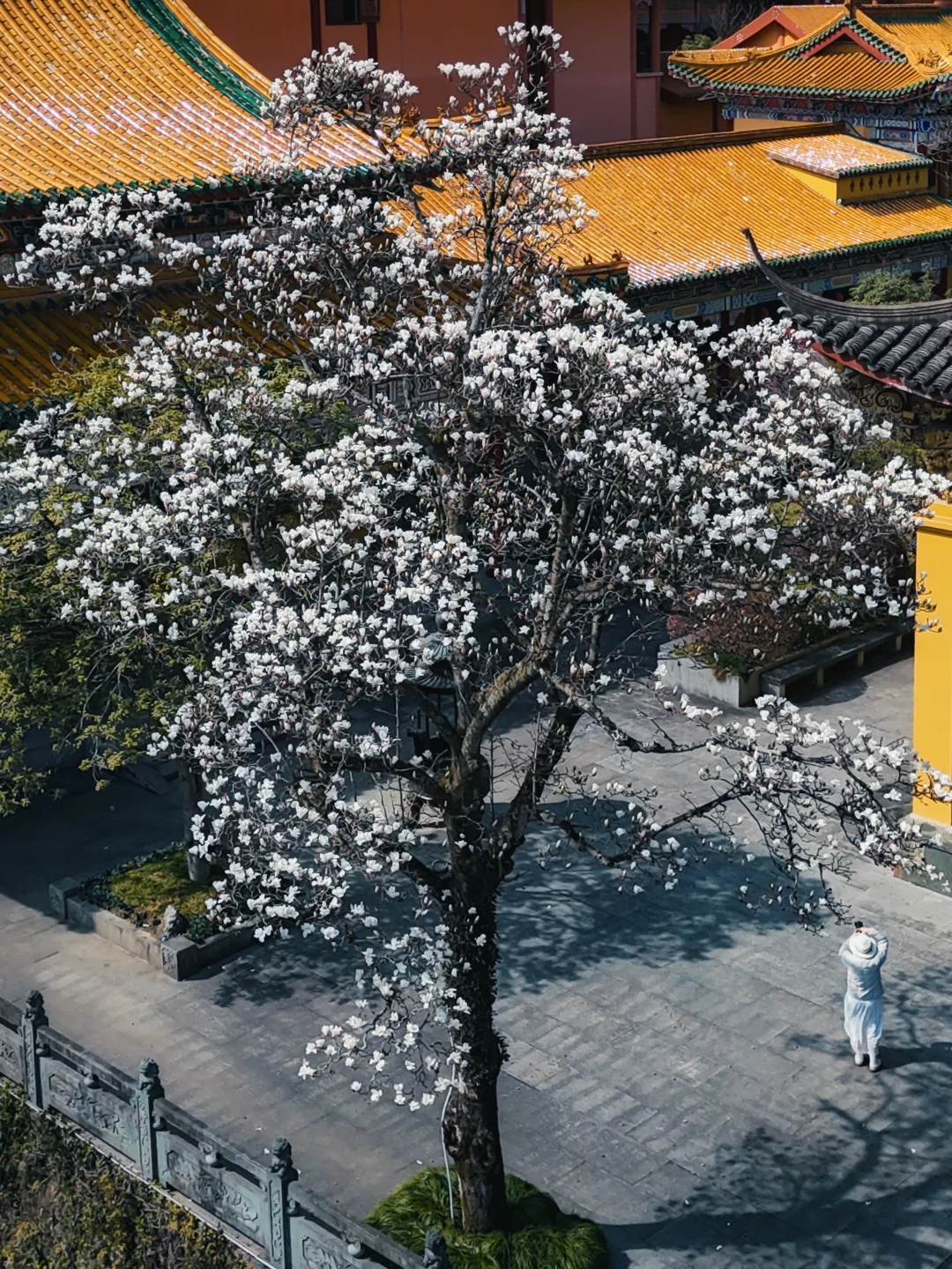 ✅最佳机位:韦陀殿前玉兰树(仰拍人像+古建超有故事感)