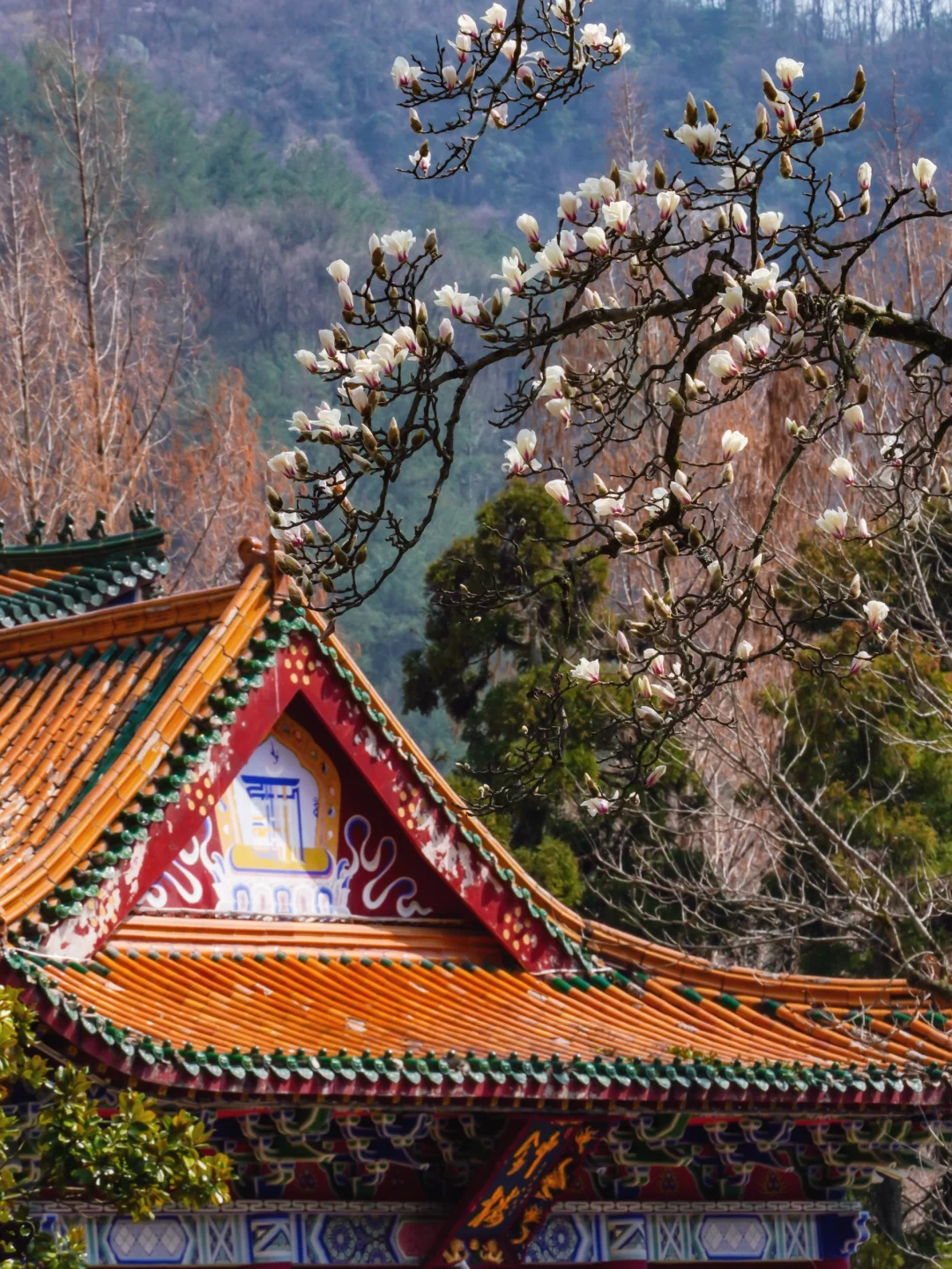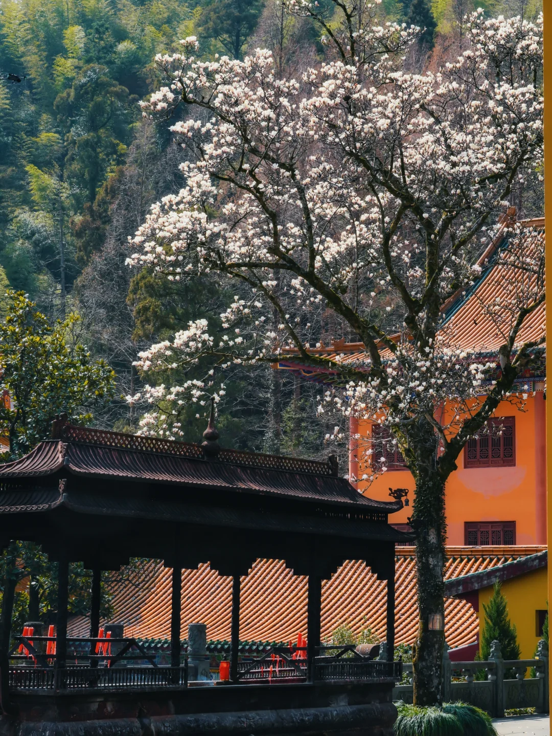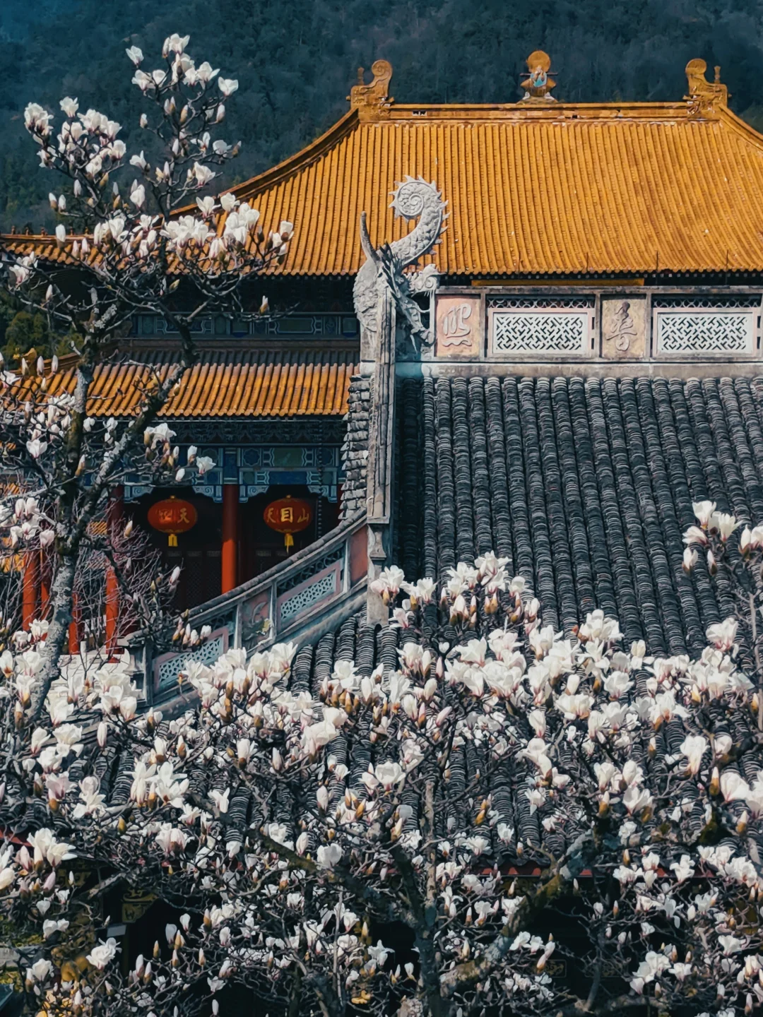 ✅最佳机位:韦陀殿前玉兰树(仰拍人像+古建超有故事感)