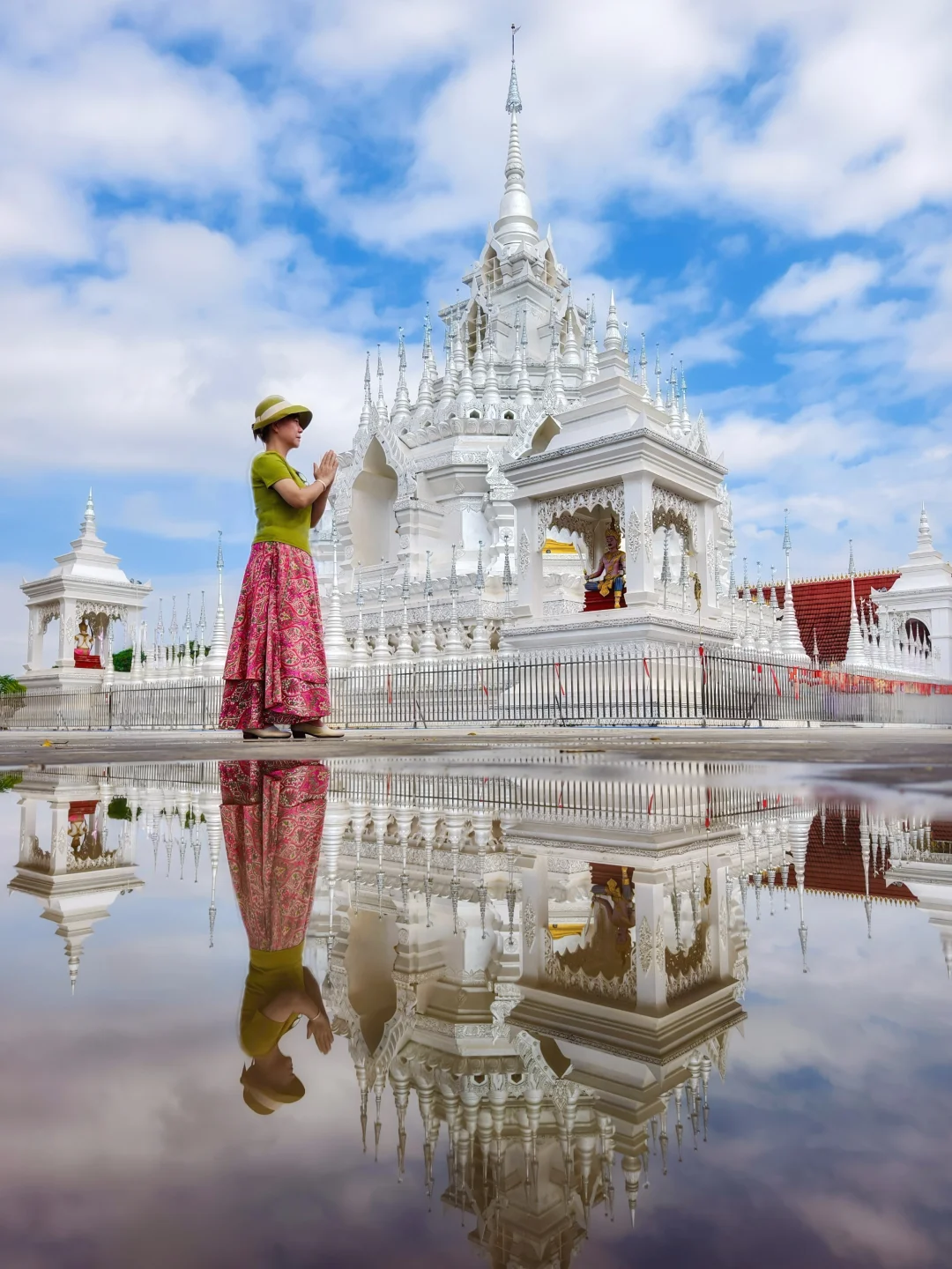 整洁的白庙肃穆崇高、宁静宜人。在阳光下照映白庙和水面/镜子中景致绝美!
