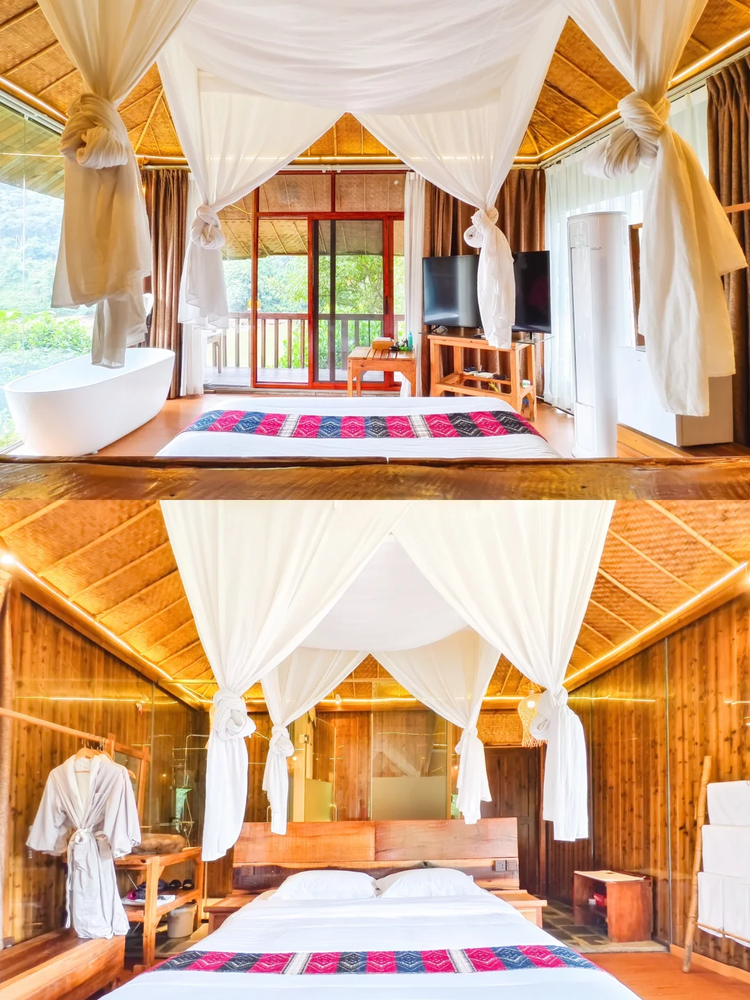 ⚠告庄附近确实出去玩很方便,但是晚上会比较吵,睡觉浅的姐妹还是要慎重!离告庄半小时车程的【秘境·舒莎丽别院】真的是让我在版纳睡爽了!临江而建的幽静小院,自然原始的傣族吊脚楼设计,贴近自然的同时舒适感max!