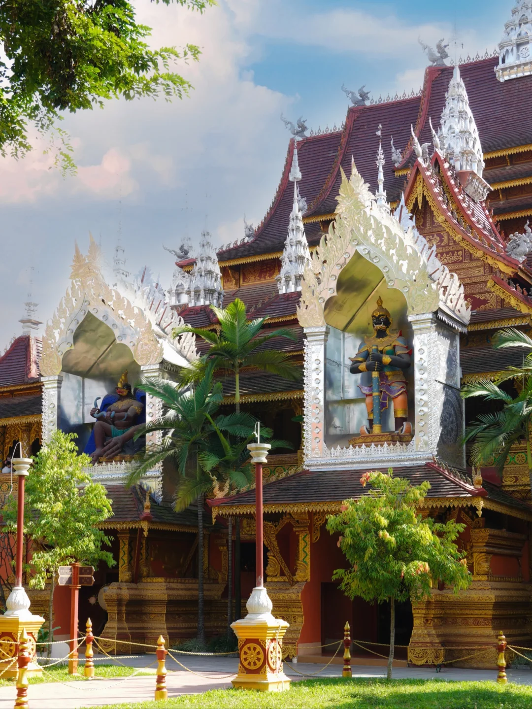 欣赏完壮观的金黄色傣王宫以及里面瑰丽多彩的各种花卉所构成的一座迷人的皇家园林后,去版纳本地人都去的总佛寺烧香许愿。