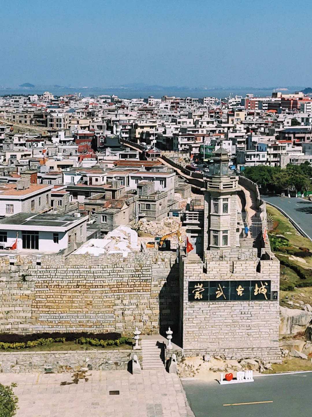城墙全长约2.5公里,全部由花岗岩砌成,坚固异常;四个城门都设有瞭望台和箭楼,展现了古代海防工事的智慧与雄伟;