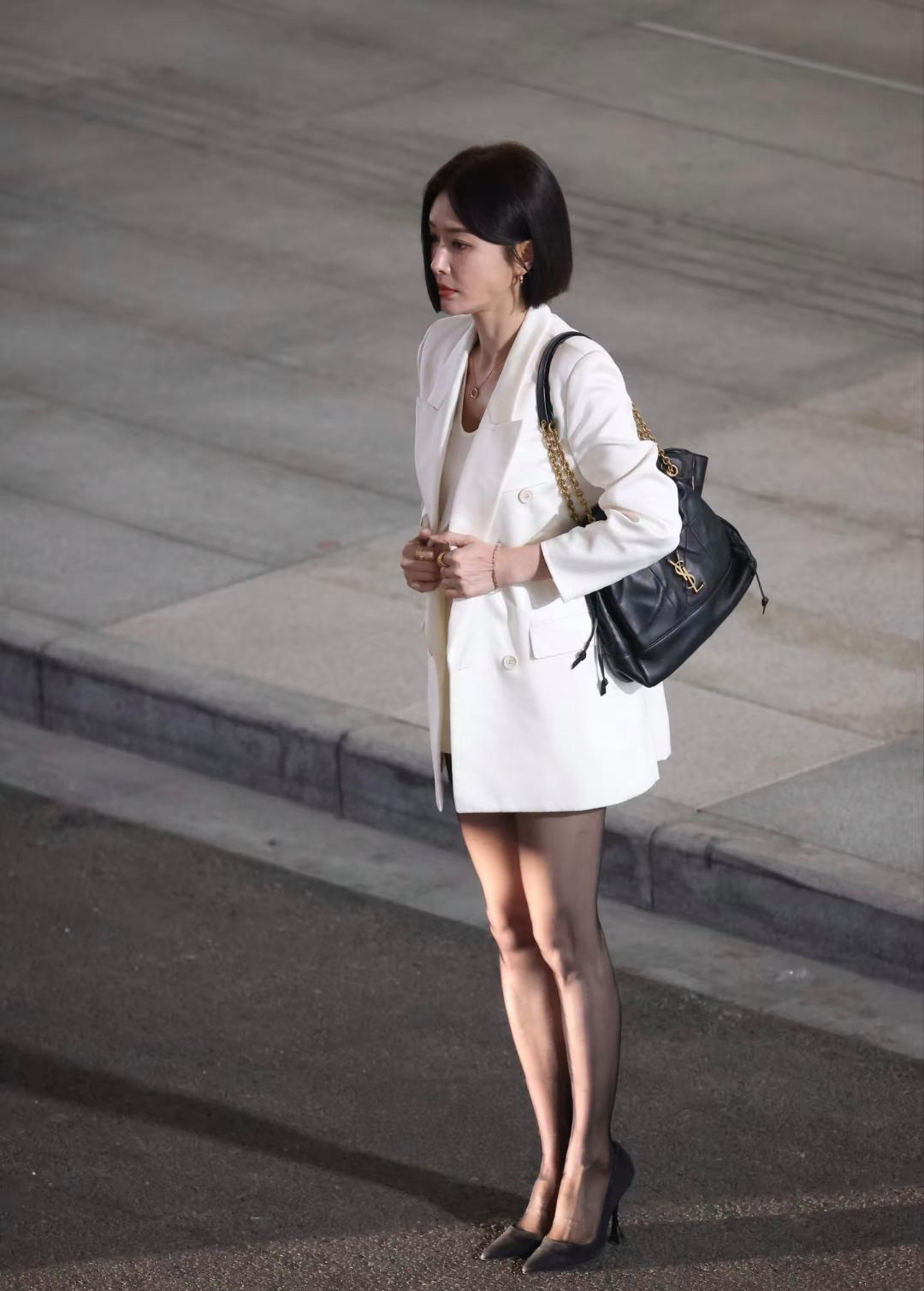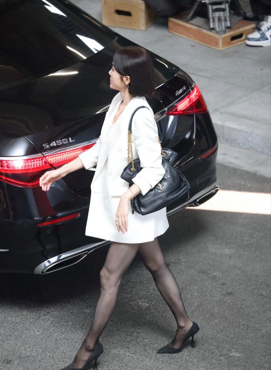 46岁秦岚在江苏街头出现,她穿着黑丝袜,脚踩高跟鞋,好像职业女强人,又美又飒!她的外表很抗老,身材又好,完全没有姨味!