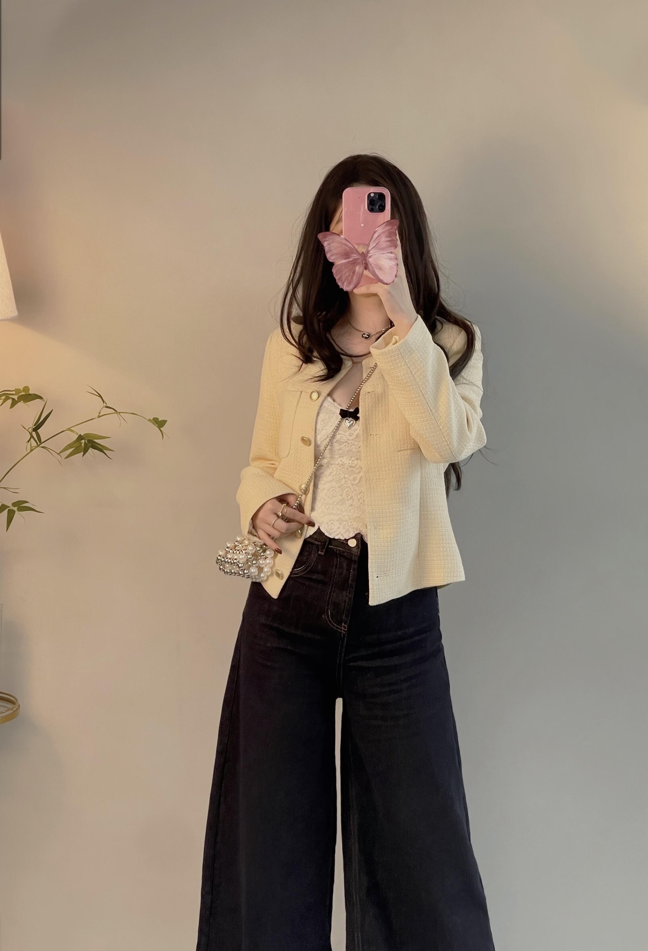 看到温文尔雅的小姐姐穿搭瞬间被时尚感狠狠拿捏深灰色短款外套搭黑色瑜...