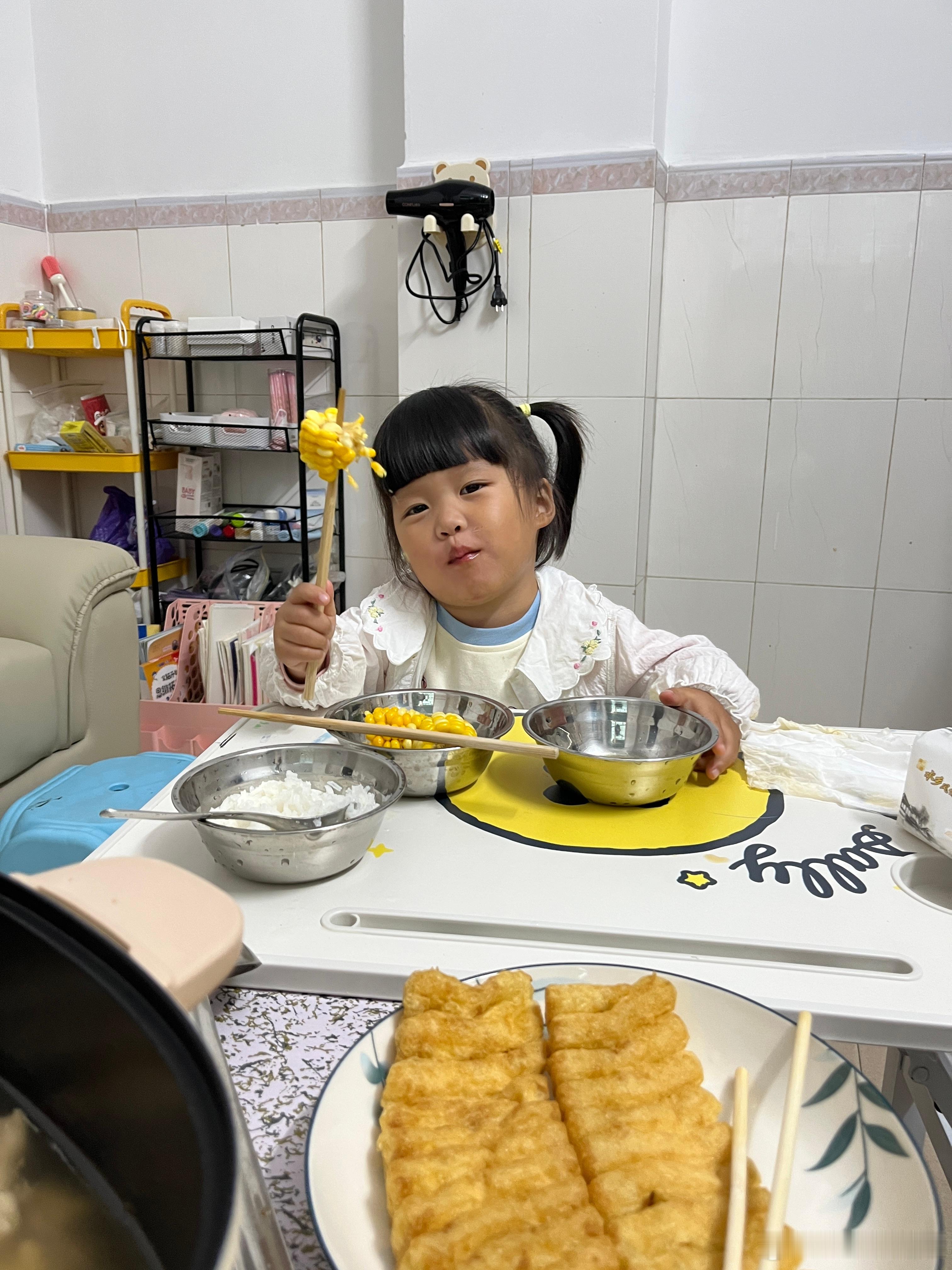 天冷就适合吃火锅,天天刷到别人吃火锅,我都流口水本来想去外面吃,细狗又说不想吃,算了,我自己弄,一样买一点,吃得好满足。女儿让她用学习桌吃,桌子太小,我怕烫到她。他们是情侣吗?