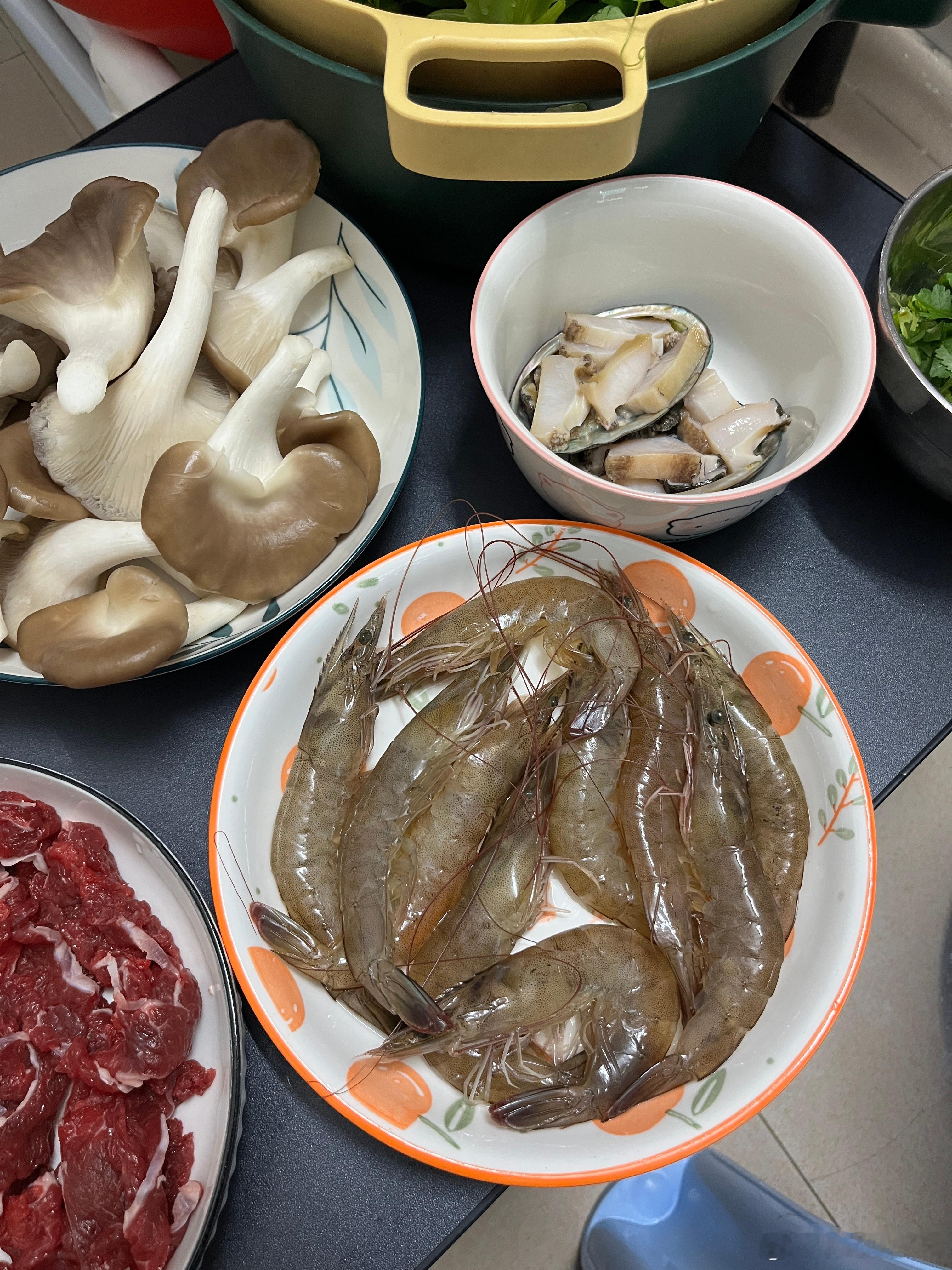 前几天轮到我请其他三个女同事,去的火锅店,没喝酒,就点的羊肉,牛肉,虾滑……牛羊