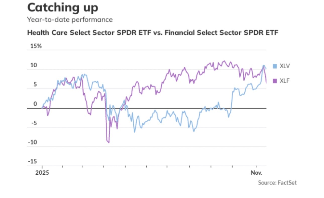 市场对科技股越来越谨慎,医疗板块能否成为黑马? 年底焦虑持续冲击投资者情绪,周一的抛售后,没有任何迹象表明有人趁低吸纳。原因在于市场对人工智能的担忧,以及对美联储降息预期的减弱。科技股,确切地说是人工智能,已经成为2025年最吸引眼球的投资主线,也让坚持这一板块的投资者收获颇丰。但现在是否该开始考虑其他选择?来自金融科技公司SoFi的投资策略主管莉兹·托马斯给出了一个新思路:她认为医疗保健板块有望在2026年成为一匹黑马。“在进入2025年时,这是一个非常逆势的选择,因为小罗伯特·F·肯尼迪刚刚上任为卫生与公众服务部长,”托马斯说。“他在推行各种改革,这个行业也因为预期中政府即将出台的措施而表现不佳,确实是经历了艰难的一年。”为海外华人提供有价值的信息与分析,更多内容和全文可在蓝天、电报、x查找causmoney,或直接谷歌搜索不过,她认为,医疗保健板块有望在2025年底前实现“强势补涨”,因此仍坚持年初的判断。“这个板块今年也许最终会成为表现最好的板块之一。甚至可能很快就会进入领先位置,超过工业板块。”她指出,在过去一周内,医疗保健从年初以来表现最差的板块之一,变成了跑赢金融板块的赢家。医疗保健精选板块SPDR ETF(XLV)今年上涨约10%,而金融精选板块SPDR ETF(XLF)涨幅在6%以上。“当投资者从科技板块撤出,寻找新的增长机会时,他们并不打算离场,而是在寻找成本较低的标的,而医疗保健在今年某个时候,估值在标普500成分股中处于最低的百分之一位,”她说。“比这更便宜的板块,几乎找不到了。”她表示,越来越多追求估值优势与增长潜力的投资者,已经开始关注医药和生物技术。虽然SoFi仍在制定2026年的展望,但她认为医疗保健板块可能会成为2026年的另一个关注焦点。“我喜欢今年的医疗保健,是因为它具备补涨潜力、估值轮动的机会,以及医药和生物科技领域的增长潜力,”托马斯说。她还补充,这个板块通常在像2026年这样的中期选举年表现较好,主要因为更具防御性。托马斯表示,她的团队对2025年总体持乐观态度,但他们有两个担忧:通胀可能重新升温,以及人工智能变现能力不足、企业盈利令人失望。虽然这两个风险尚未成为现实,但他们仍对人工智能持谨慎态度。她还表示,SoFi曾预测今年软件板块会跑赢半导体板块,不过这一预测尚未实现。“我们看好软件板块的逻辑在于,科技投资者仍在寻找增长机会,但在当前市场中更看重估值,因此可能会从半导体板块转向软件板块。而软件将成为人工智能真正落地的下一个渠道,”托马斯说。在道琼斯工业指数大跌近800点后接受采访时,托马斯指出,市场中大量投机成分正在被清除,特别是那些押注动量交易的投资者。她仍然预计,年末会出现一波追涨行情,基金经理将试图赶上业绩。她表示,挑战在于:“说得简单点,每个人都以为自己能在崩盘前及时抽身。我们不知道市场是否会崩,也不知道何时崩,但当股价涨幅如此夸张时,迟早会回归现实。”(市场观察)
