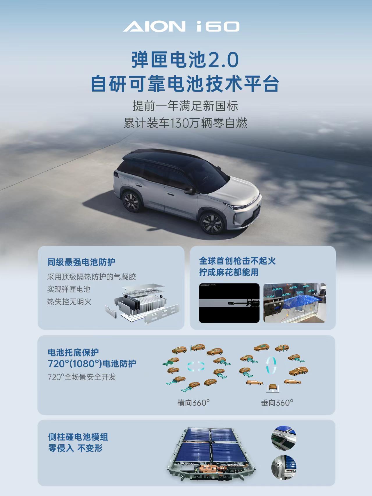 11月16日埃安i60上市发布会上面公布了一个行业震撼的政策——“烧一赔三”。一直以来,电池安全都是新能源用户最敏感的神经,也是近段时间很多不同车企都面临的大问题,也是车企最不敢轻易承诺的禁区。但埃安这一波敢直接喊出“烧一赔三”,背后是真有底气。这份底气,来自搭载的弹匣电池2.0——它已经历市场严苛验证,累计装车超130万辆,总行驶里程突破500亿公里,至今保持“0自燃”纪录。不止于此,在枪击、针刺、扭转折叠、摆锤撞击等极端测试中,它依然能做到不起火、不爆炸。电池安全不止于电芯。埃安i60的电池舱采用1500MPa热成型钢打造,高强度钢占比高达72%。更针对侧面碰撞,在两侧门槛内加入蜂窝状铝合金结构,侧柱碰时能高效溃缩吸能,确保电池模组零侵入、不变形。就在近期,埃安i60还挑战了中汽中心的全网首次刮底后双柱碰连环挑战,结果再次印证其高安全标准:电池模组无漏液、无冒烟、无明火,电芯完好无损,零侵入、未变形。可以预见,这一承诺将重新定义行业安全门槛。以后买车,“烧一赔三”或将成为新的硬指标——没有这份保障,确实不敢轻易下手。据了解,用户购埃安i60后如发生自燃,经权威机构鉴定确认起火直接原因符合赔付条件,即可根据实际情况获得相应赔付。