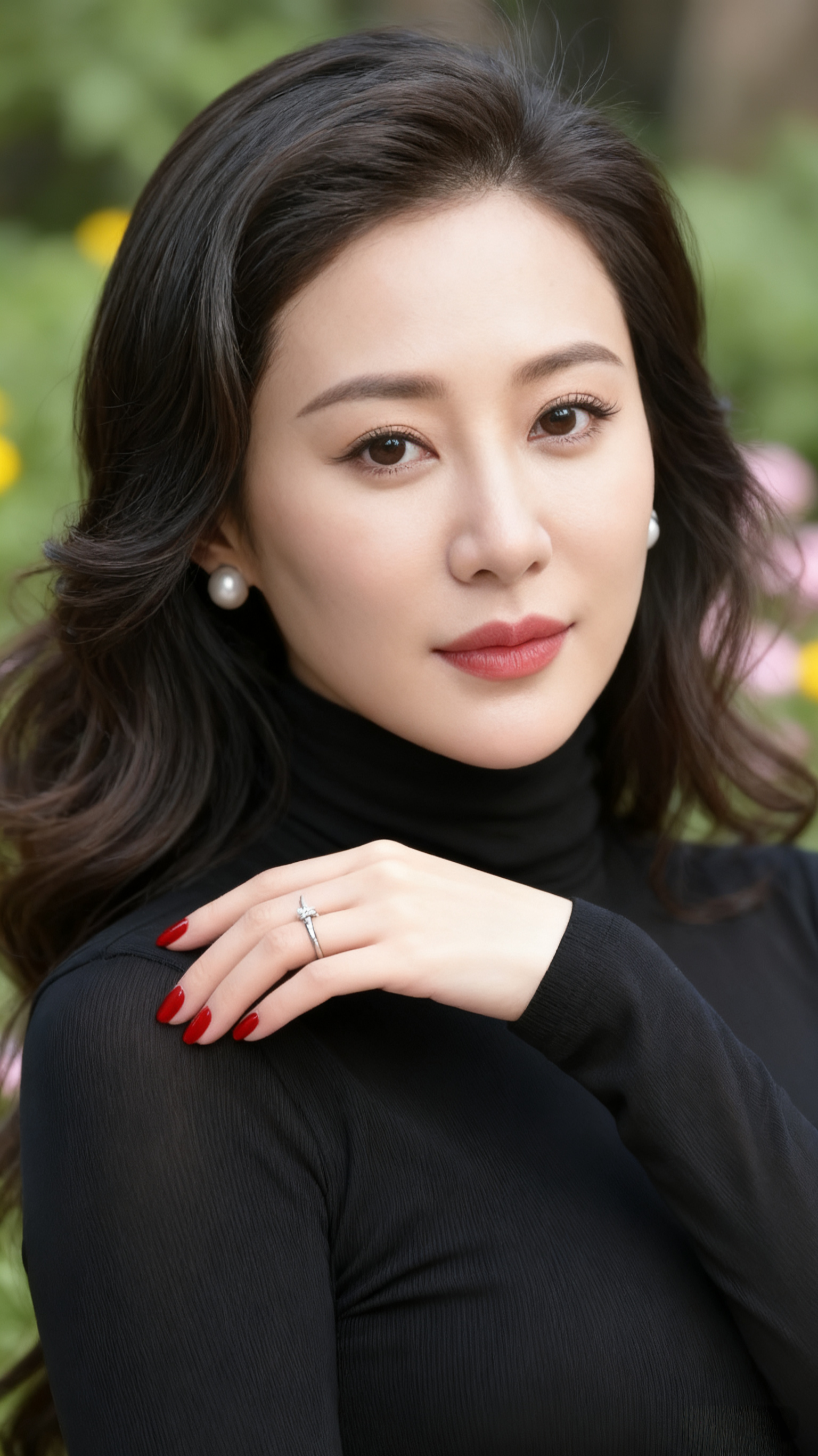 漂亮的职场气质美女! 黑色的长袖高领打底衫,黑色的微喇西裤,再配上一双...