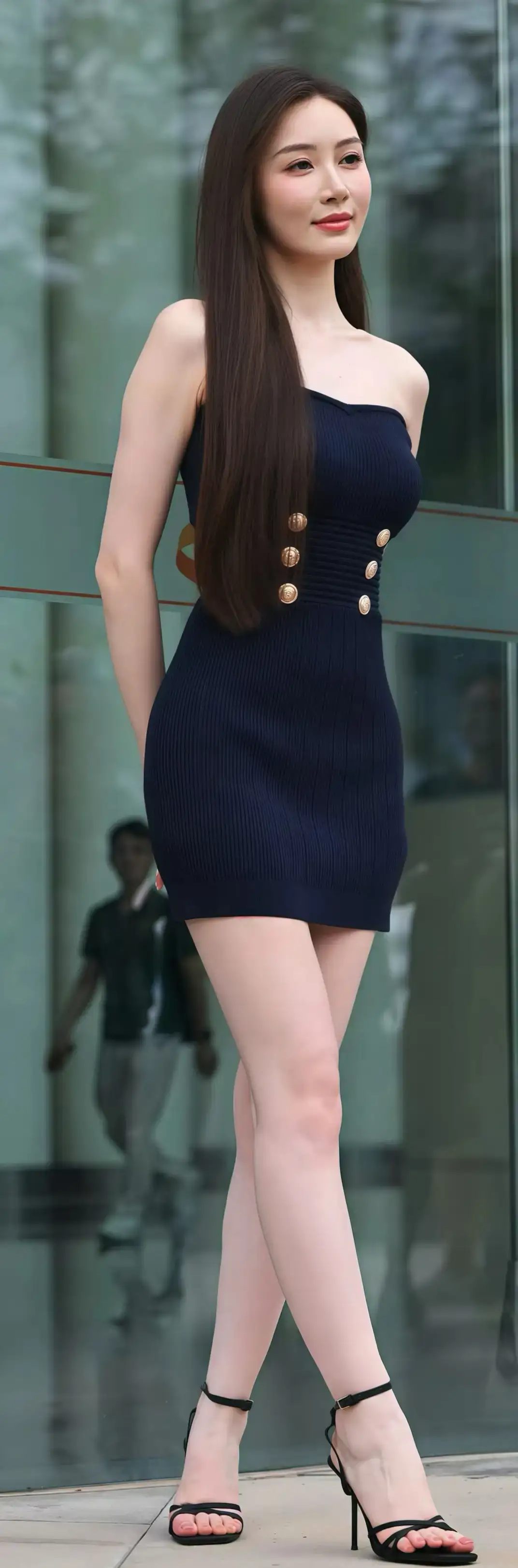 抖音初代网红,fox严谨黑色吊带裙写真
