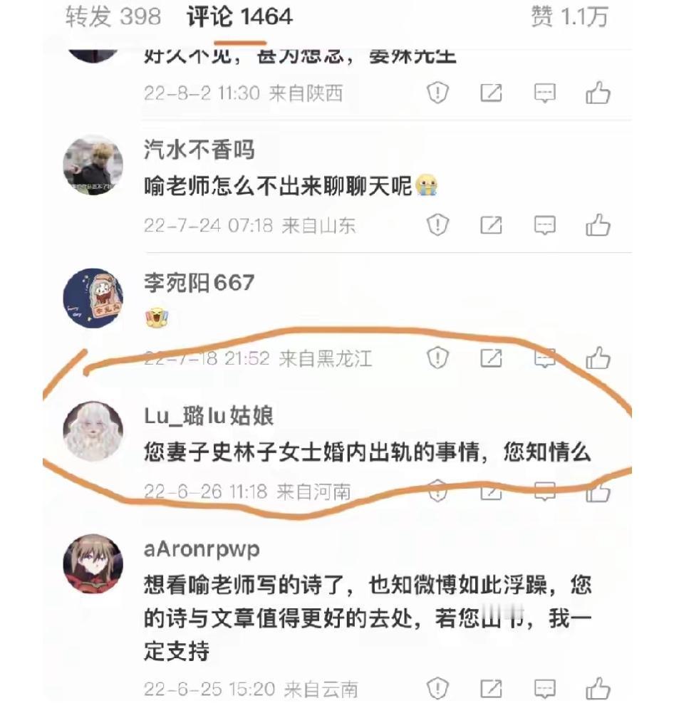 共友发声,喻恩泰事件大反转,曝史林子婚内出轨,聊天内容太刺激 喻恩泰与史林子,昔日恩爱夫妻,今日离婚一事被卓伟曝光。随即上了热搜,今早也有一位自称是二人共同朋友的账号发长文为喻恩泰鸣不平,并且指指点点。 这位自称“共友”的人发长文说史林子婚内出轨多次,并且晒出了聊天记录。 此“共友”证实二人根本不可能是恋爱脑夫妻。 早在三年前两人就已经分居。分居的原因是喻恩泰发现史林子婚内出轨,便联系了这位共友帮忙恢复手机数据,发现史林子在医院做妇科手术时还在微信上表忠心。 更离谱的是,2015年史林子怀孕期间,还和老情人撩骚,生下孩子后就约P。 2022年起,史林子与游泳教练付殷正洋开始偷情,付的老婆是个“识货”的人,在发现二人关系后果断离婚。 史林子甚至组建了一个“反查岗小组”来对付喻恩泰和查岗的人。 史林子面对喻恩泰的质问全盘否认,并主动提出离婚诉讼。 婚离了也就算了,没想到喻恩泰为了思念刚出生的孩子,在一年内写下超过365篇手稿,名为《金色的你》。 目前这件事仍在不断反转,网友也是议论纷纷,你们怎么看呢?