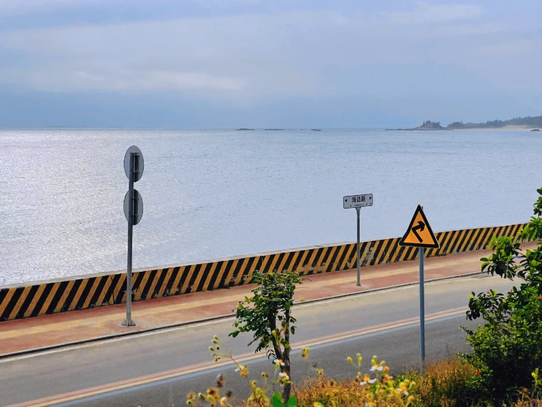 6️⃣海上公路是去往风车岛的必经之路,导航“汕尾风车岛”,快到的时候就能看到一条绝美公路,路的两边就是波光粼粼的海面[色色R]
