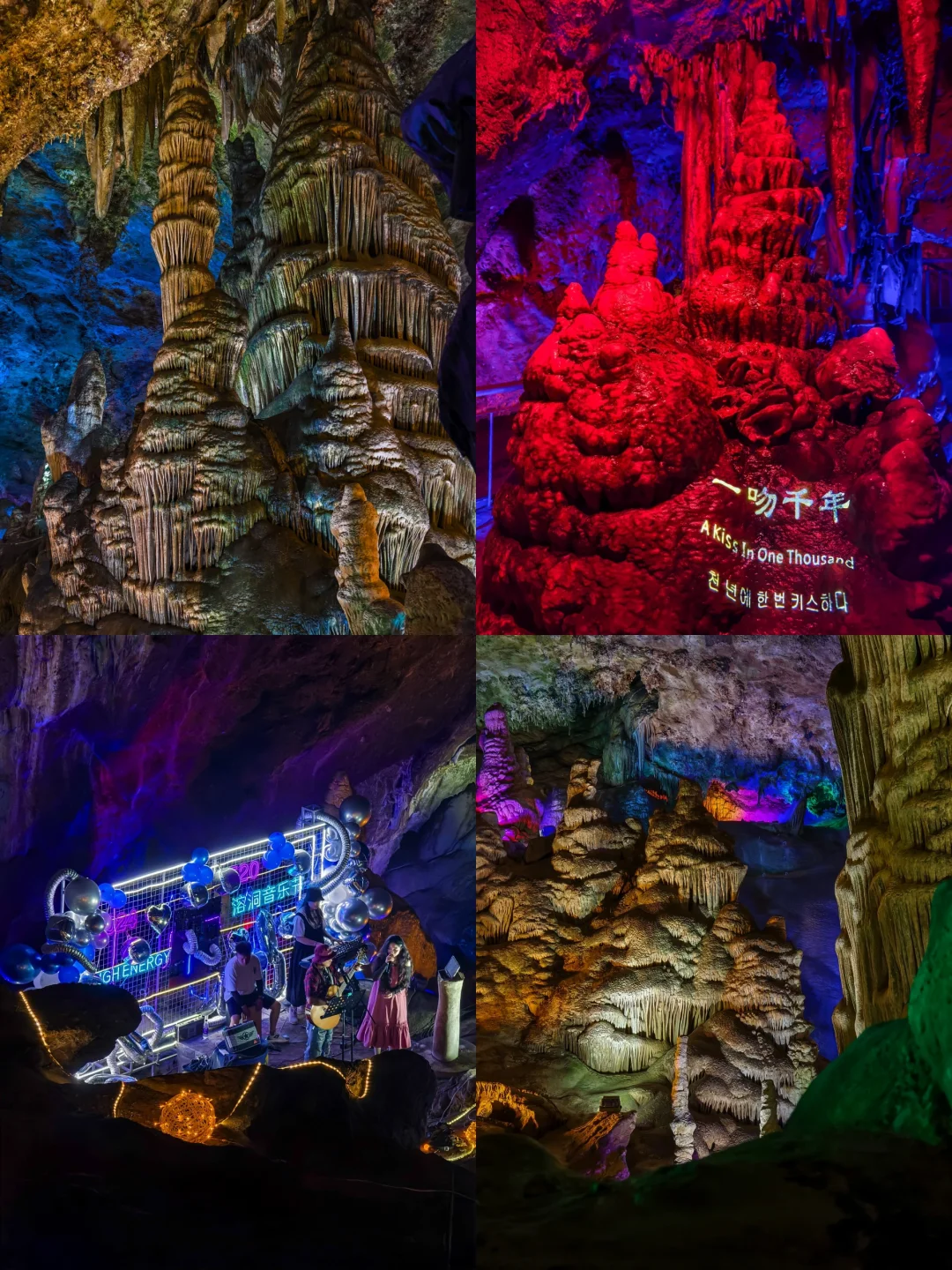 溶洞四季平均气温18度左右,适合夏天去。有工作人员带着讲解,会帮忙打卡拍照📷,还有溶洞音乐节,嗨翻全场。