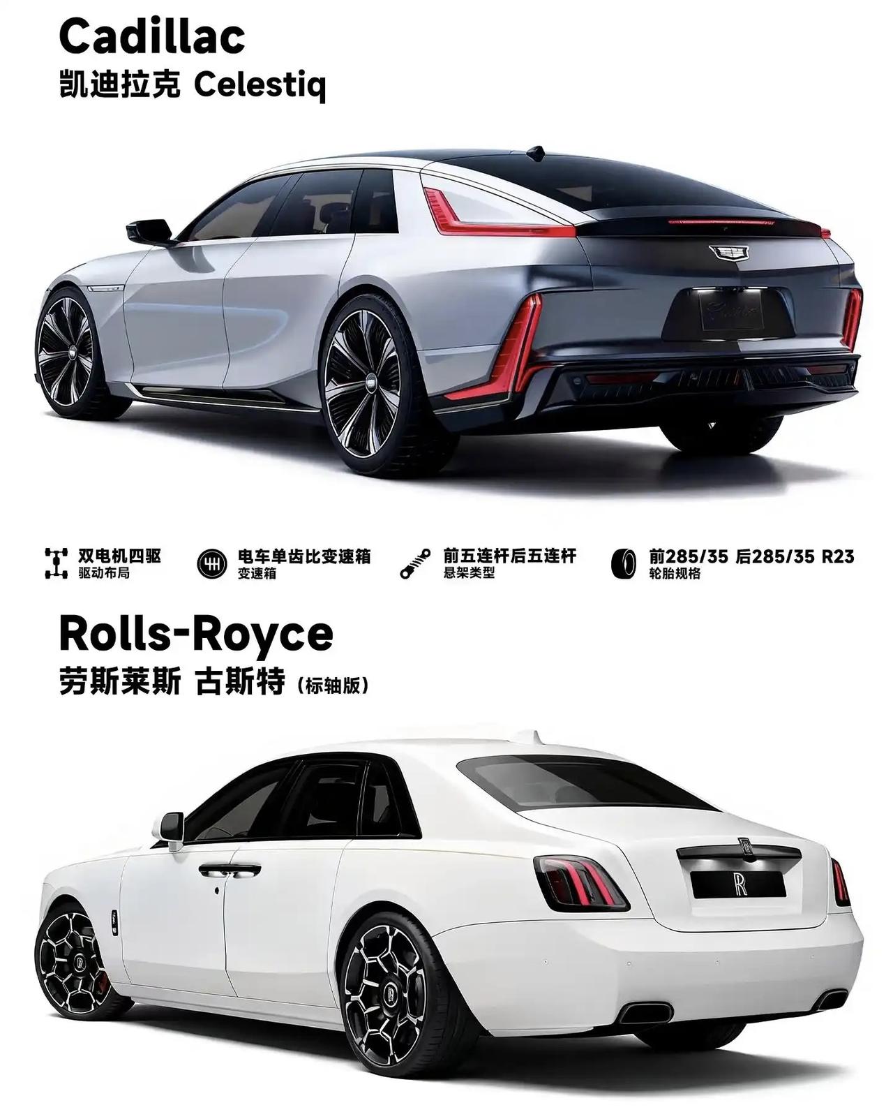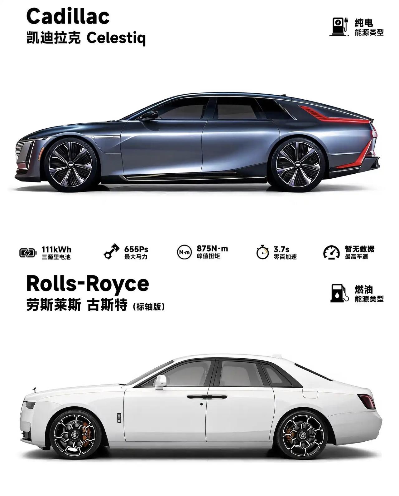 起售价40万美元,比劳斯莱斯还贵的凯迪拉克,这就是凯迪拉克Celestiq,美系豪华重返巅峰的野心之作!作为品牌史上最昂贵的纯电旗舰,它用全手工打造、不计成本的用料, 性能硬核对比:Celestiq:纯电四驱爆发655马力、875牛 . 米扭矩,0-100km/h仅3.7秒! 古斯特:6.75L V12输出571马力、850牛 .米,0-100km/h需4.8秒。