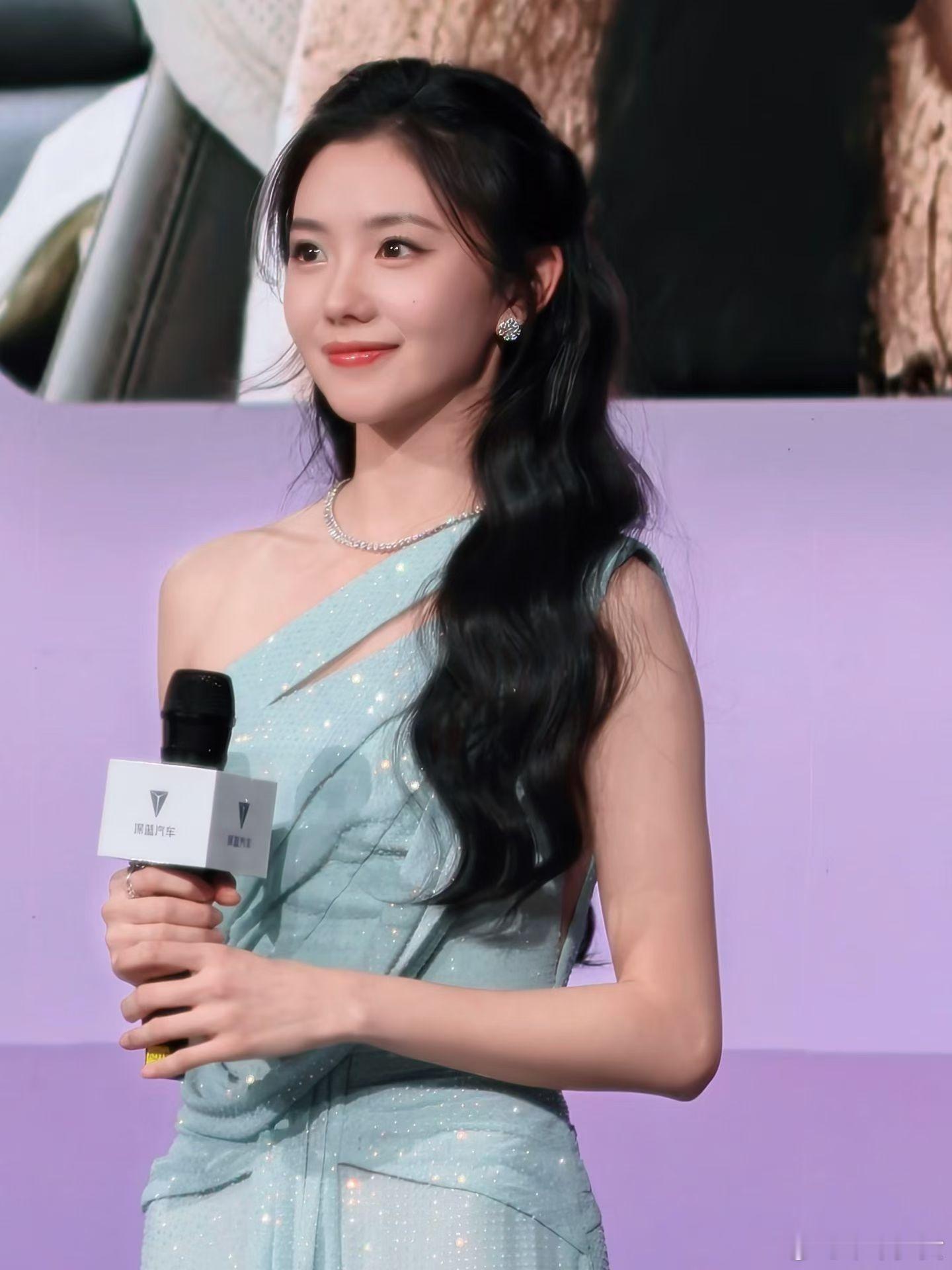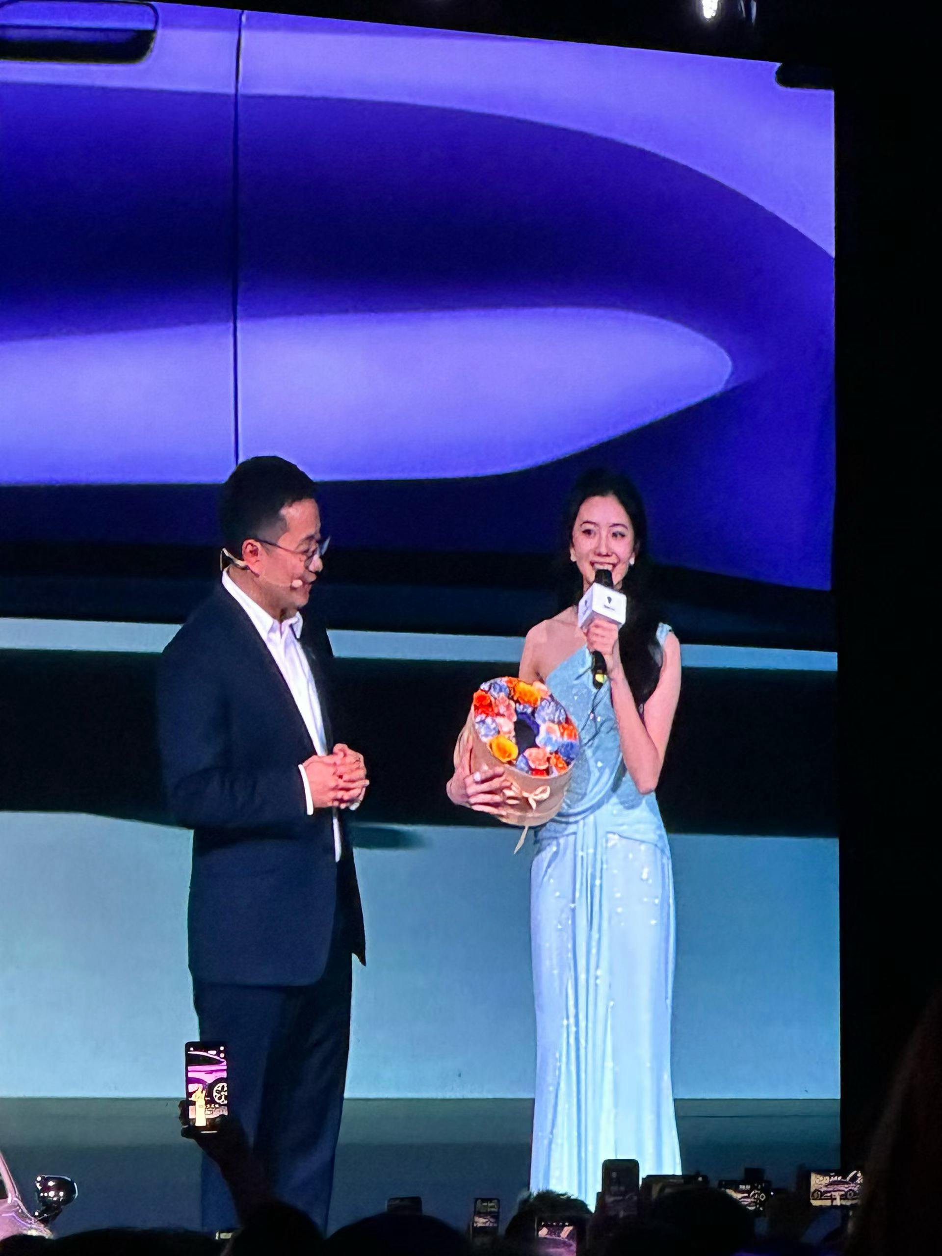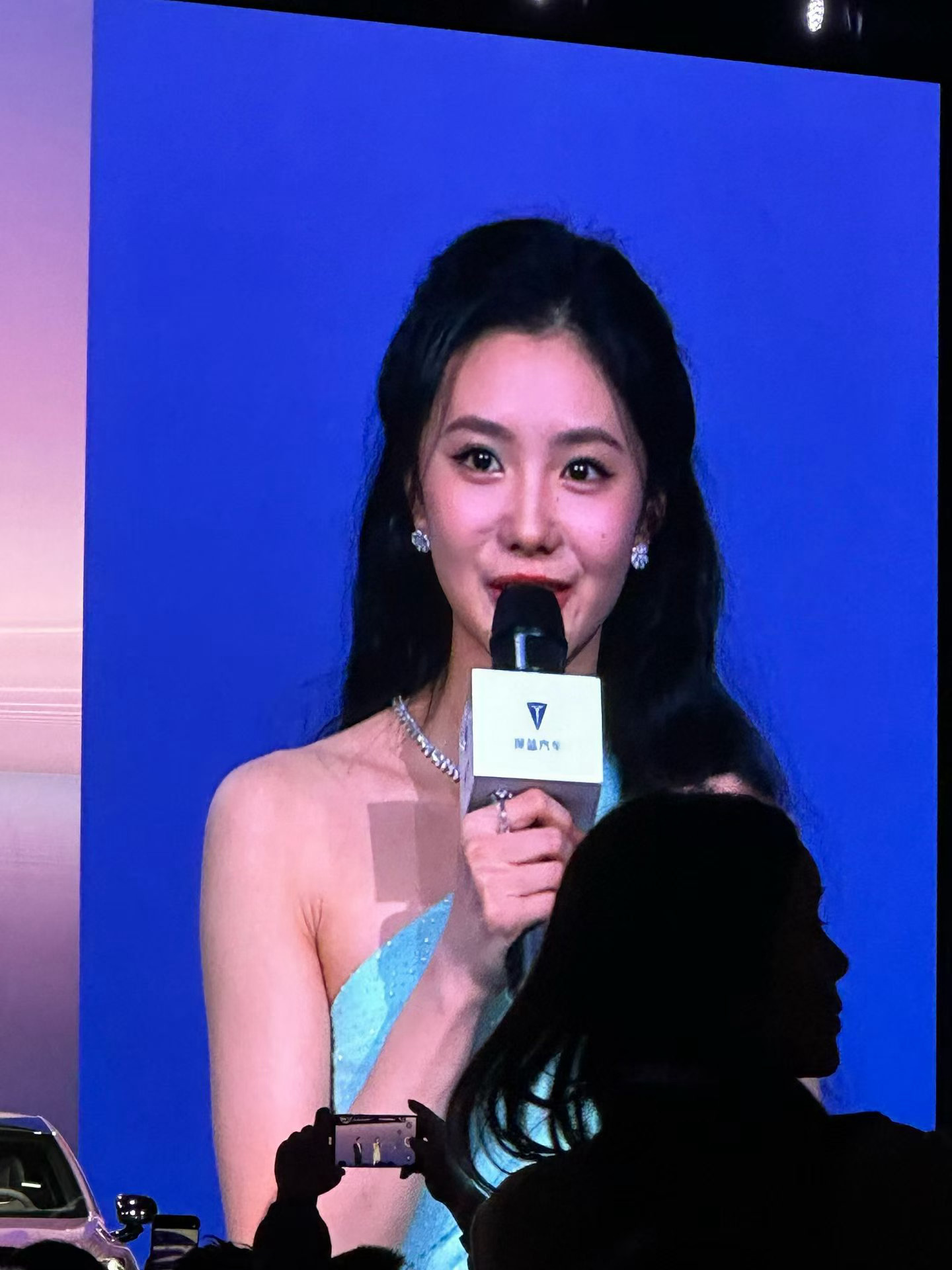 刘浩存晚上竟然穿蓝色的,等等,不是深蓝L06代言人,深蓝L06后面还有品牌大使,