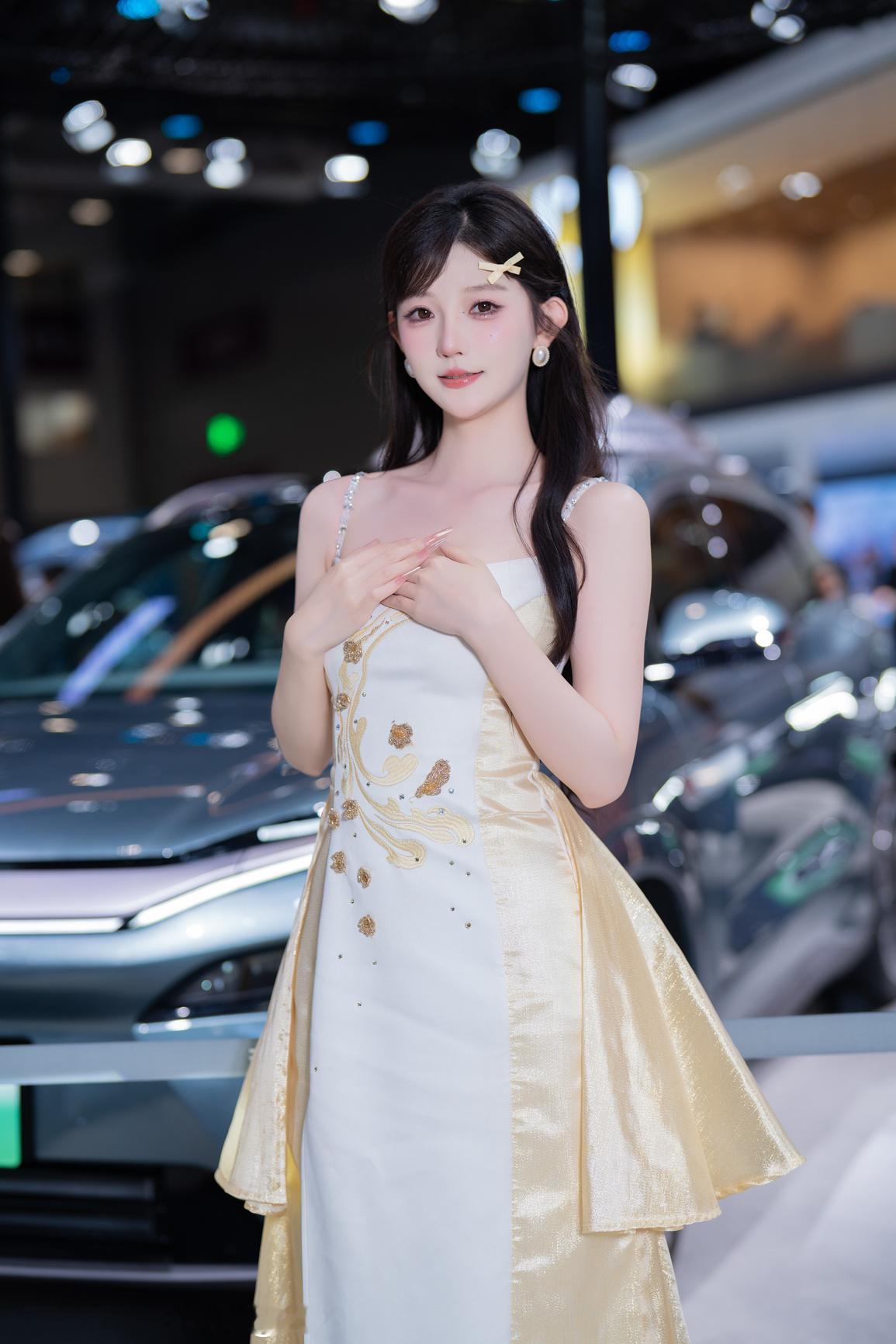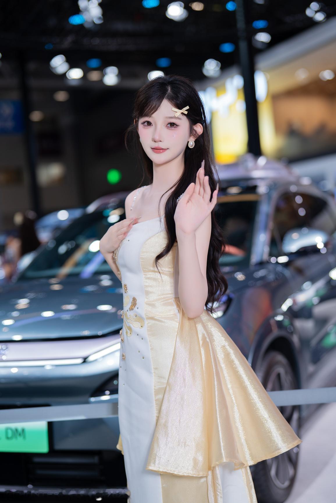 短发模特,晶莹剔透,不一定要长发及腰才是顶流,这样的车展模特,长相甜美,比例绝佳