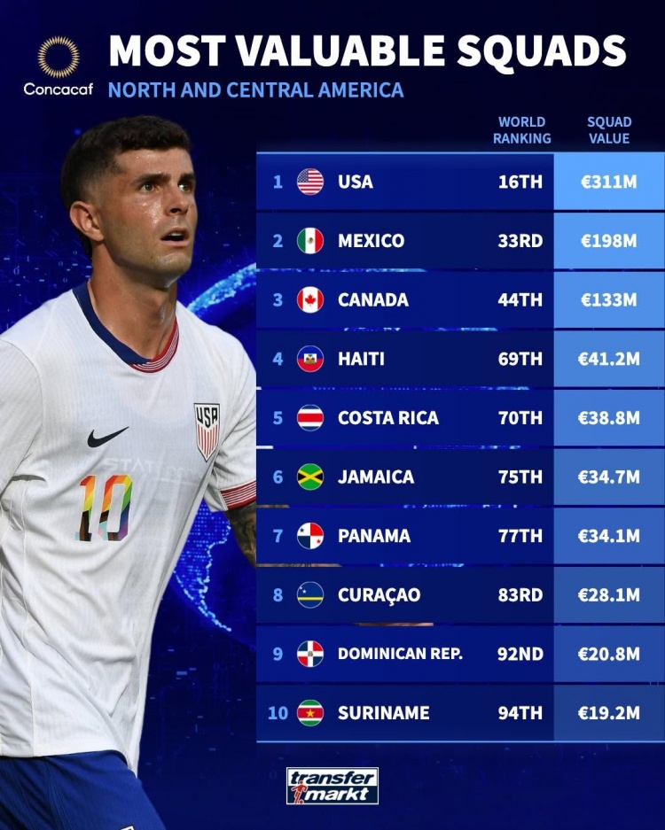 主因还是这次中北美东道主就3名额了,剩下的还能有3+2只能是芝麻绿豆大小的加勒比国家了