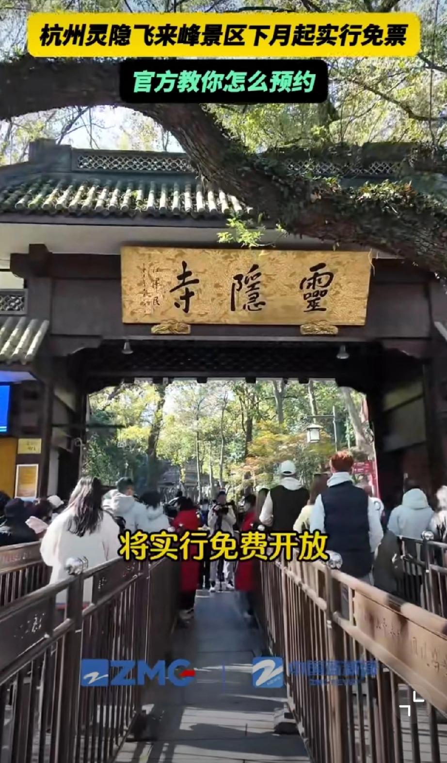 继西湖之后灵隐寺也免费了,杭州官宣取消灵隐寺门票,灵隐寺预约通道下周一启用。大家