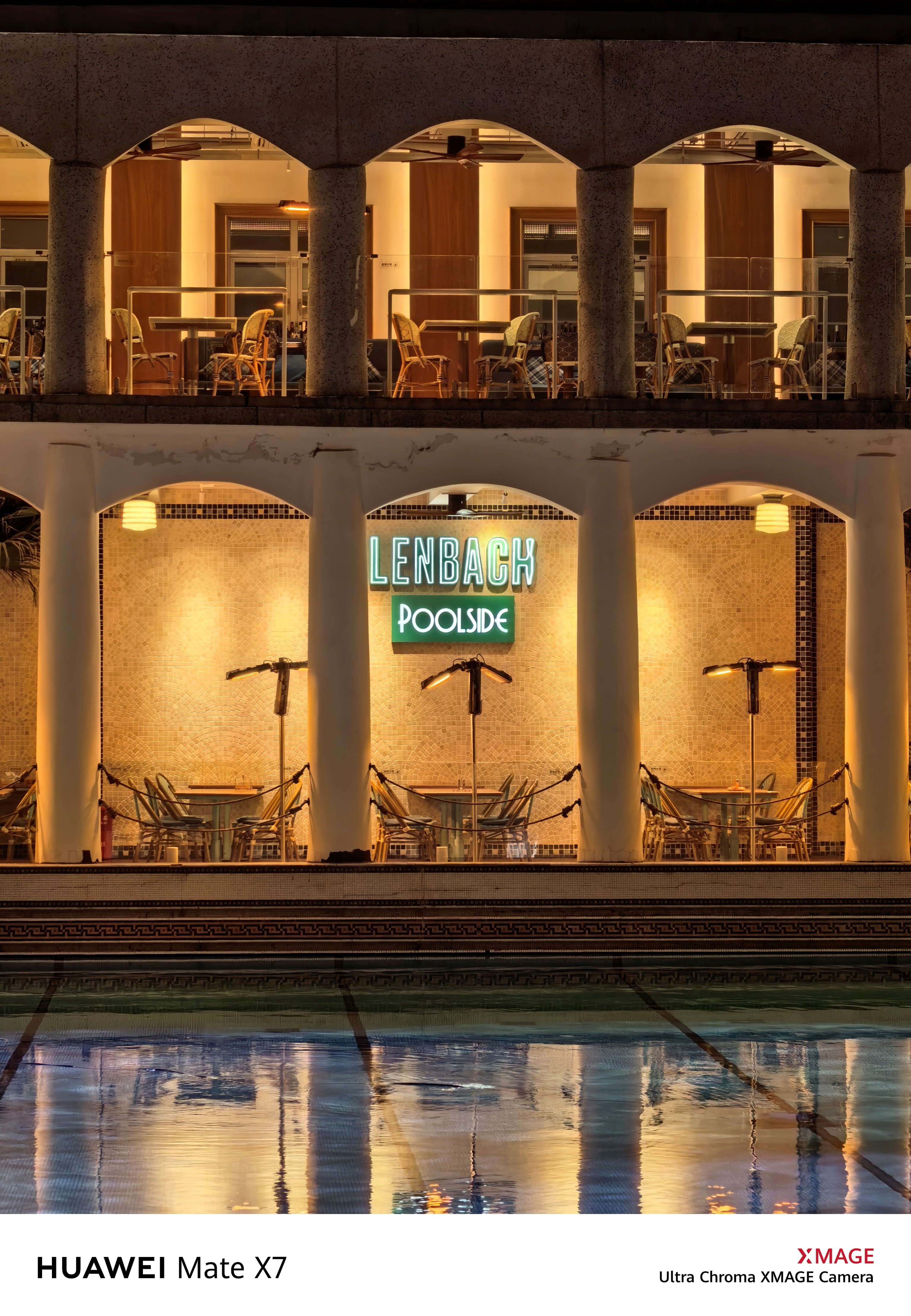在其他家大折纷纷在影像妥协,Mate X7在硬件上【不讲武德】,虽是折叠,但它给折叠屏的影像拉到了一个新的高度,堪比直板影像旗舰,拍了一些照片,讲几点我感知很明显的感受:1.色彩再次升级,Mate X7首发第二代红枫原色摄像头,遇到大面积反差色的环境,Mate X7可以更准确地展现它本来的颜色,像这里的泳池,大面积蓝色和上面的暖色灯,友商17 Pro Max就开始发白,而Mate X7就有保留了当时的氛围。2.超级大底在折叠屏再次回归,就算在晚上,Mate X7身为折叠屏,和友商直板机比,也是从从容容游刃有余3.动感摇拍,和视频比,照片更像是定格瞬间,但不太能展示速度感,打开动态照片后,你可以在Mate X7随时切换正常形态,或者是这种类似飞驰感的照片,拍马路的车,或者是奔跑的人都有奇效~华为这次在这么轻薄的手机里塞这么强的硬件,让Mate X7在后期可玩性上也更进一步,或许它重新定义了折叠屏的创作边界,大家可以期待一波~