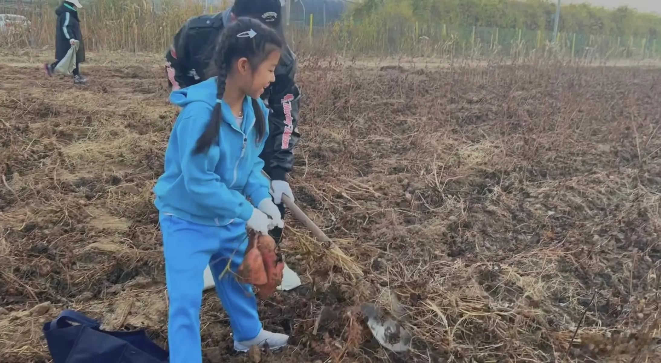 汪峰带女儿醒醒挖红薯 父女俩分工合作画面温馨有爱