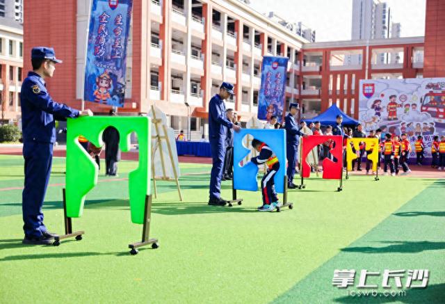 针对儿童认知特点,浏阳消防救援大队专门设计了多项沉浸式体验项目。在“小小消防员大变身”环节,孩子们穿戴消防帽、消防马甲,化身“迷你消防员”,在兴奋与自豪中增强了对消防职业的认知与尊重。在消防知识问答环节,孩子们踊跃参与,巩固所学知识。在“火线救援”和“穿越生命通道”孩子们将所学知识灵活运用到实际。