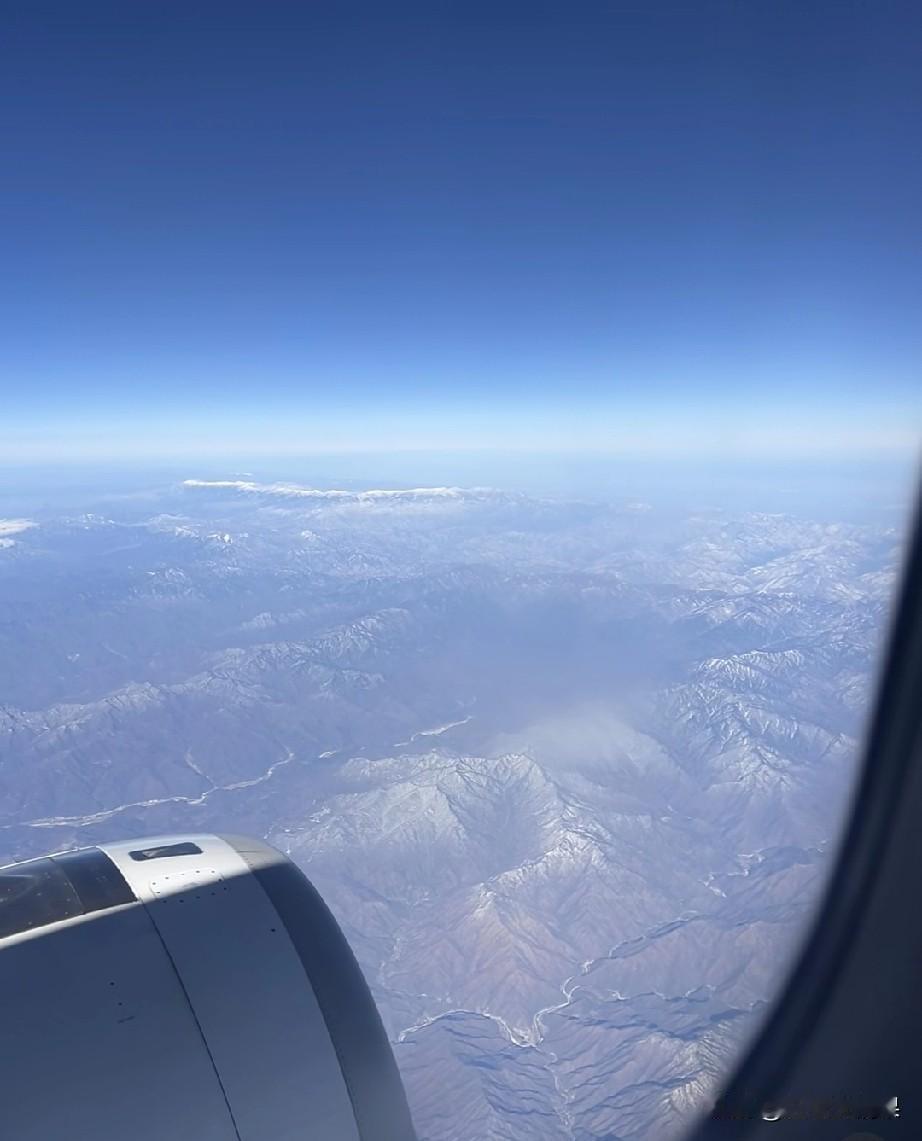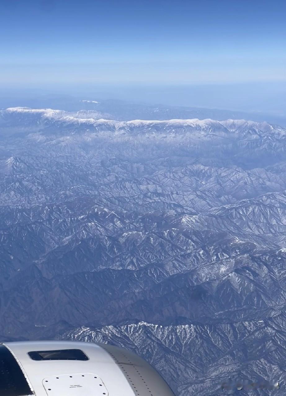 在飞机上如果没有看错,这一条白色的巨龙应该就是冬季秦岭的鳌太线吧。 白茫茫的积雪