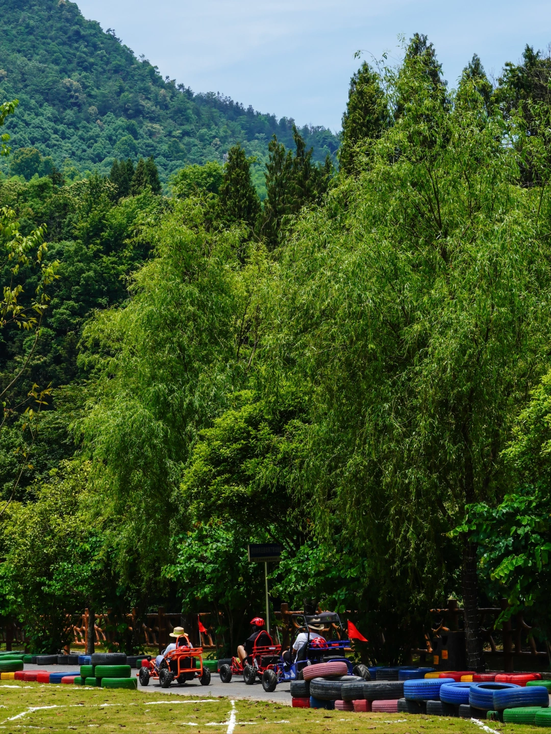 整个园区分为2大板块,1️⃣入园就直接冲摆渡车+“卧龙云梯”上山--2⃣️在“隐龙谷”拍古风/度假的休闲大片--3⃣️刷”金龙谷玻璃栈道漂流“--4⃣️刷”卧龙峡谷漂流“--5⃣️去“至欢大舞台”看表演--6⃣️山脚下烧烤露营玩卡丁车