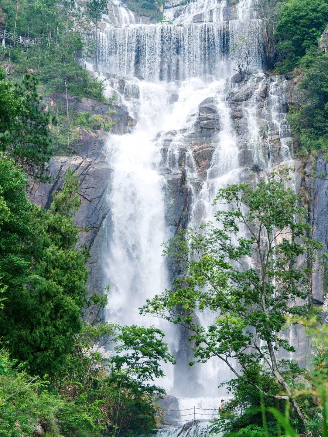 李白笔下的人间仙境,“龙楼凤阙不肯住,飞腾直欲天台去”。层层叠叠的“九天银河”从云雾仙境中气势磅礴,声势浩大地飞流直下,落差高达325米,不愧是中国第一高瀑。