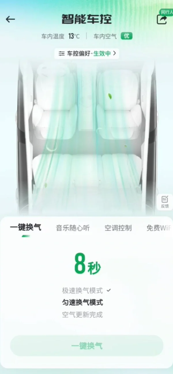 结果惊喜地发现「曹操专车」已经卷到乘客自己可以手机启动“一键换气”了!