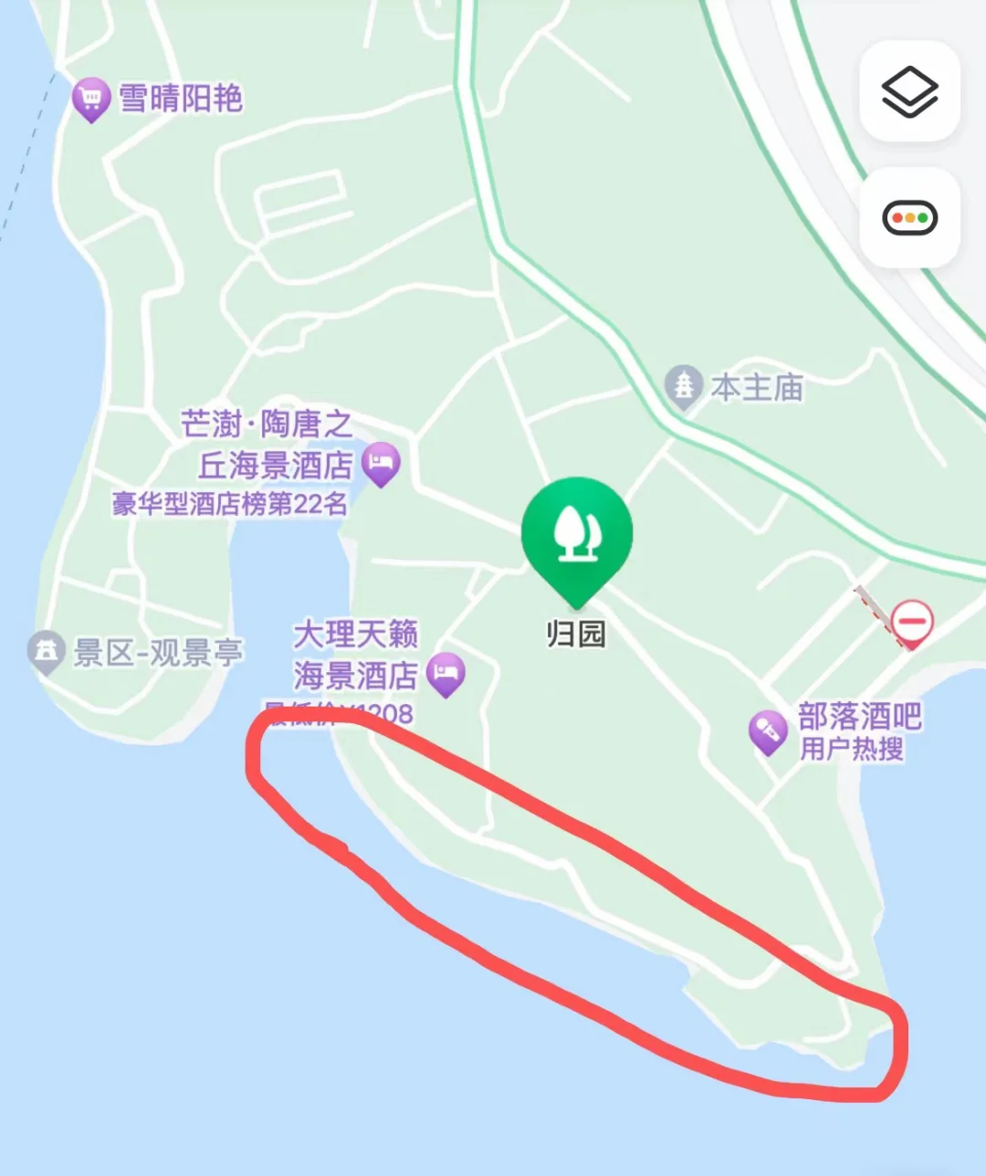 都来双廊了,一定要去住一次亲水民宿!!!经过🍪酥饼实地探索发现,图2红框框出来那条路上的酒店景观视野都是绝佳。上风很大的大理明月松间 也在这条路上(很有自己的风格,硬件设施也很不错,天台可以上去是绝佳的拍照点,预算充足的盆友一定要去享受一下!!!)旁边的大理双廊半月拖蓝 和大理双廊澜庭别院 也都是一线海景,景观上丝毫不逊色,可以根据喜欢的风格来选择[色色R]