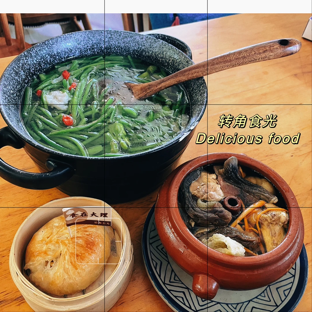 🥘转角食光餐厅(正餐):怎么点都不会错啊!!!汽锅鸡的汤汁能鲜到你脑瓜子发麻,薄荷炸排骨就是肉食动物的狂欢(分量很大),水性杨花汤比较清淡,非常适合饭后来一碗刮刮油。