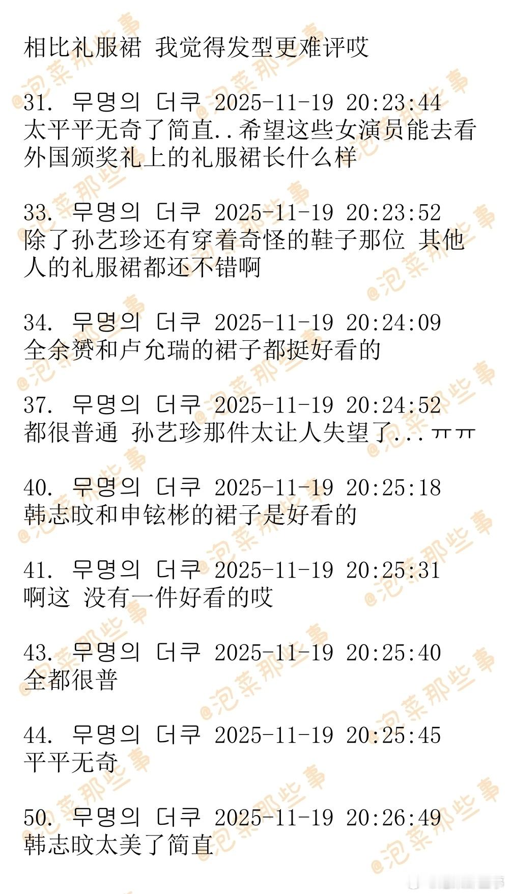 🔥🔥韩网500楼热帖评论翻译🔥🔥青龙奖颁奖礼女演员们的礼服裙韩志旼孙艺珍