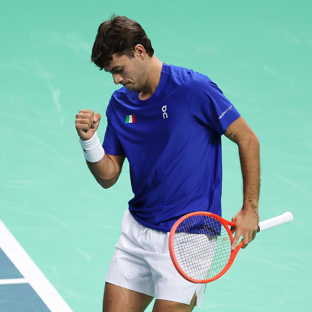 ATPTour(网球)报道。弗拉维奥·科博利以6-1的比分迅速拿下首盘,对阵菲利普·米索利奇。@DavisCup|#DavisCup|@federtennis