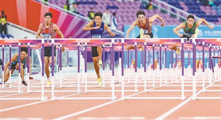 当日,第十五届全国运动会田径项目男子110米栏决赛在广州举行。