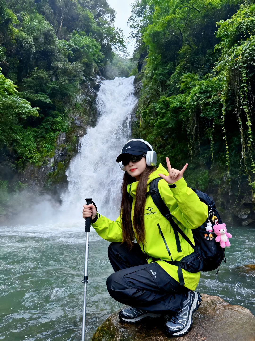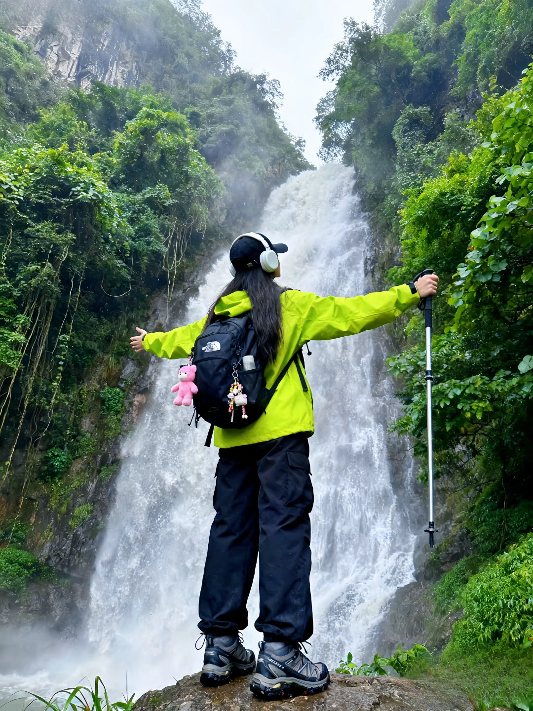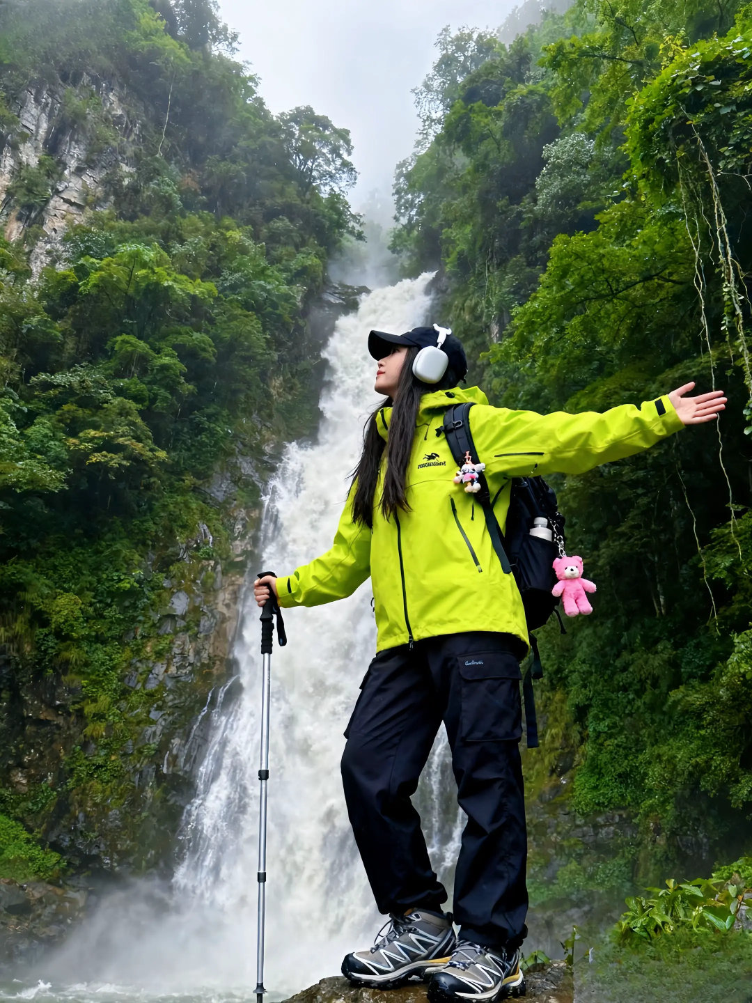 现在就出发吧!亮黄冲锋衣是活力铠甲,登山杖作伴,耳机里的歌与山风共舞。瀑水轰鸣,