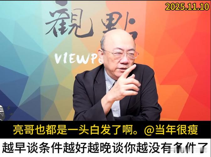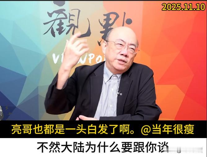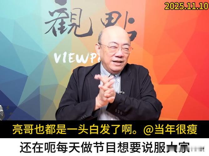 谈和平必然是在统一的框架下啦,要不然大陆凭什么和你谈。越早谈越好,越晚谈就越没有条件。这是今早上郭正亮博士在节目里回答网友提问,如何看待苏起说的和谈是台湾唯一一条路的回答。 另外关于郑丽文祭拜白色恐怖受难者的事情,他也说了蓝可叹,绿可笑。郑丽文其实没有做错什么,蔡正元博士的说法其实是有些过分了。 亮哥这人我是喜欢听他讲话的,思维敏捷口才出众,口头禅就是“我和你说啦”,每次看到他,颇有几分久经历练而顽皮油滑的老大哥意味。 至此,就想起了“识时务者为俊杰”这句话。但今天看他节目,头顶上的反光依然明显,但两鬓的白发已然斑斑。忽然想起来,他似乎年纪也不小了,岁月从来不饶人,用俊杰来称呼他,不太合适啦。