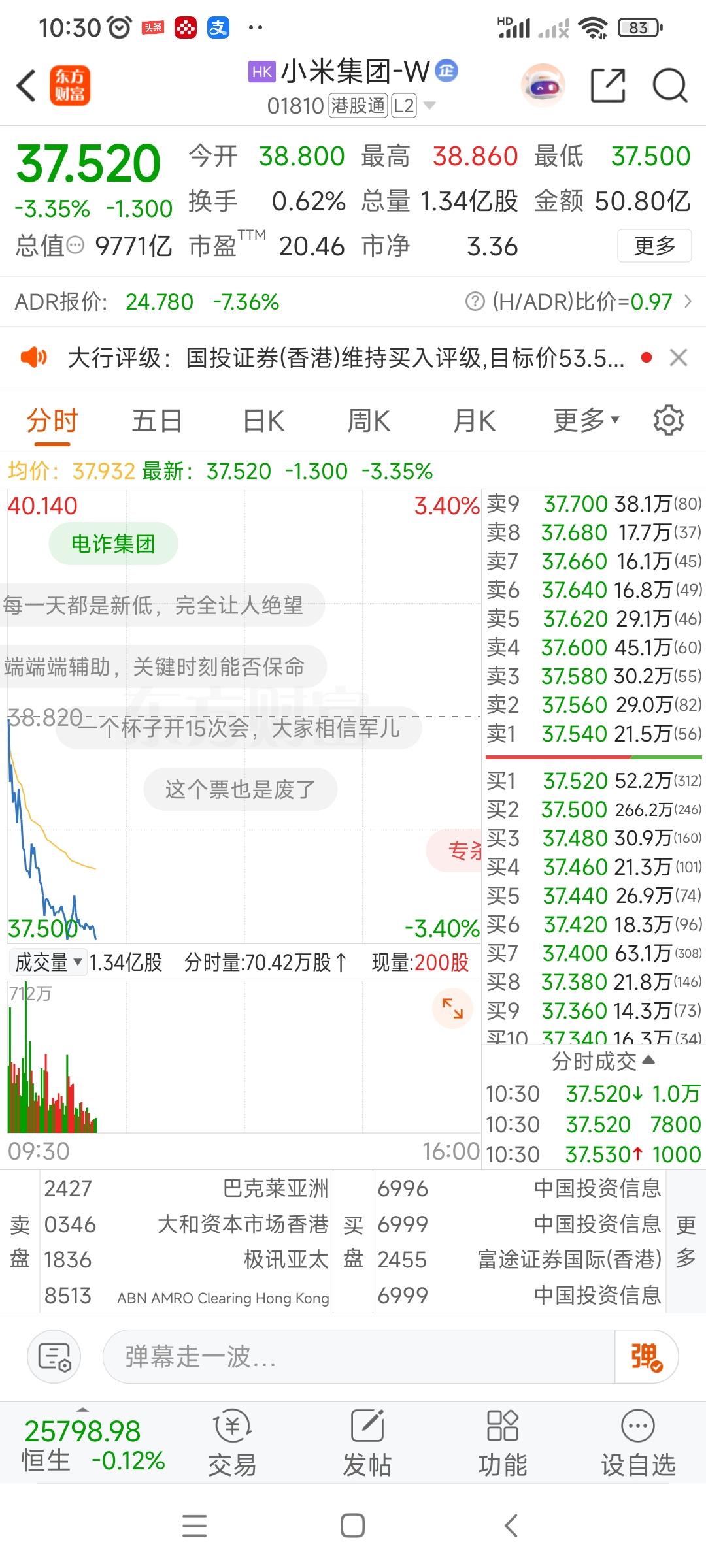 哎呀,愁死了,自从买了赛力斯股票以后这是天天绿呀,今天一睁眼又是绿了1.7点,但是隔壁家的小米好像更惨绿了3.4点。这样一比的话,我心里瞬间好受多了。