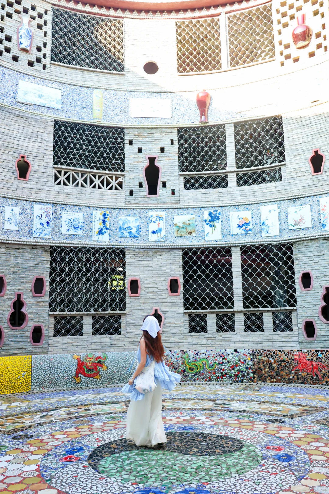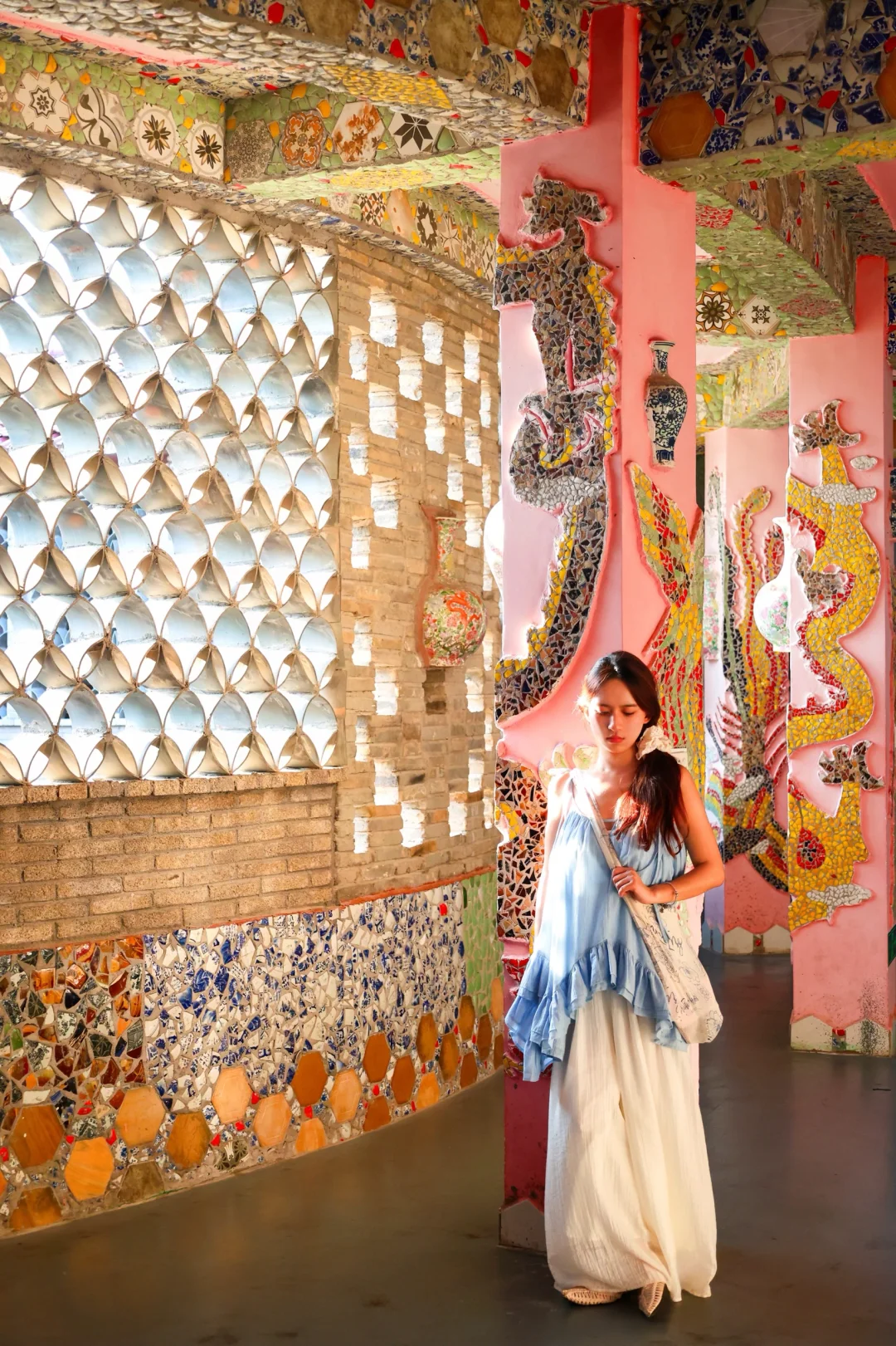 离市区有点远,三栋瓷宫都嵌满了瓷片瓷瓶,风格不一样,都很好看,🎫25/人,阴天就不要去了,不出片也没啥玩的,晴天可以冲,配色很绝!!
