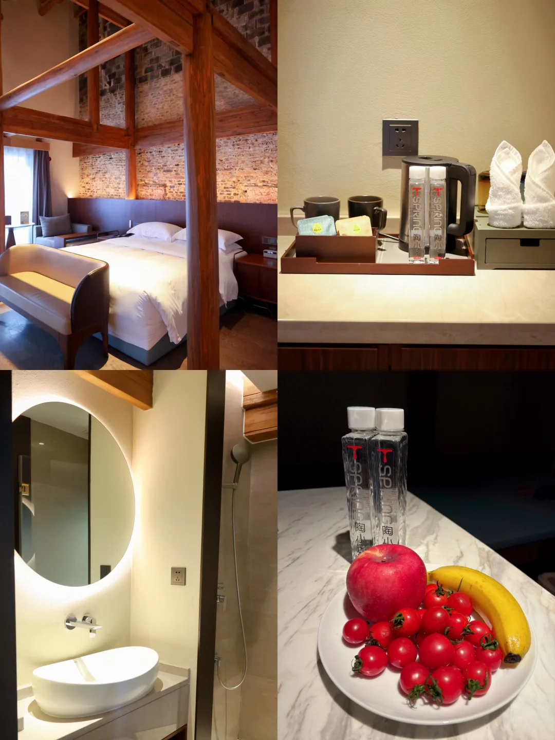 陶阳里真的蛮值得一去的,不仅有出名出片的是御窑博物馆(提前预约),还有龙珠阁,第一天就在景区里的陶邑阊阳酒店,住酒店免🎫,酒店风格很喜欢,窑砖青瓦的老民宅院,我们住的小院子的房型,晚上在院子里喝茶🍵看星星,然后去御窑博物馆拍无人的夜景!值得一提的是早餐也很好吃,景德镇特色的都有,牛骨粉、油条包麻糍,味道很不错